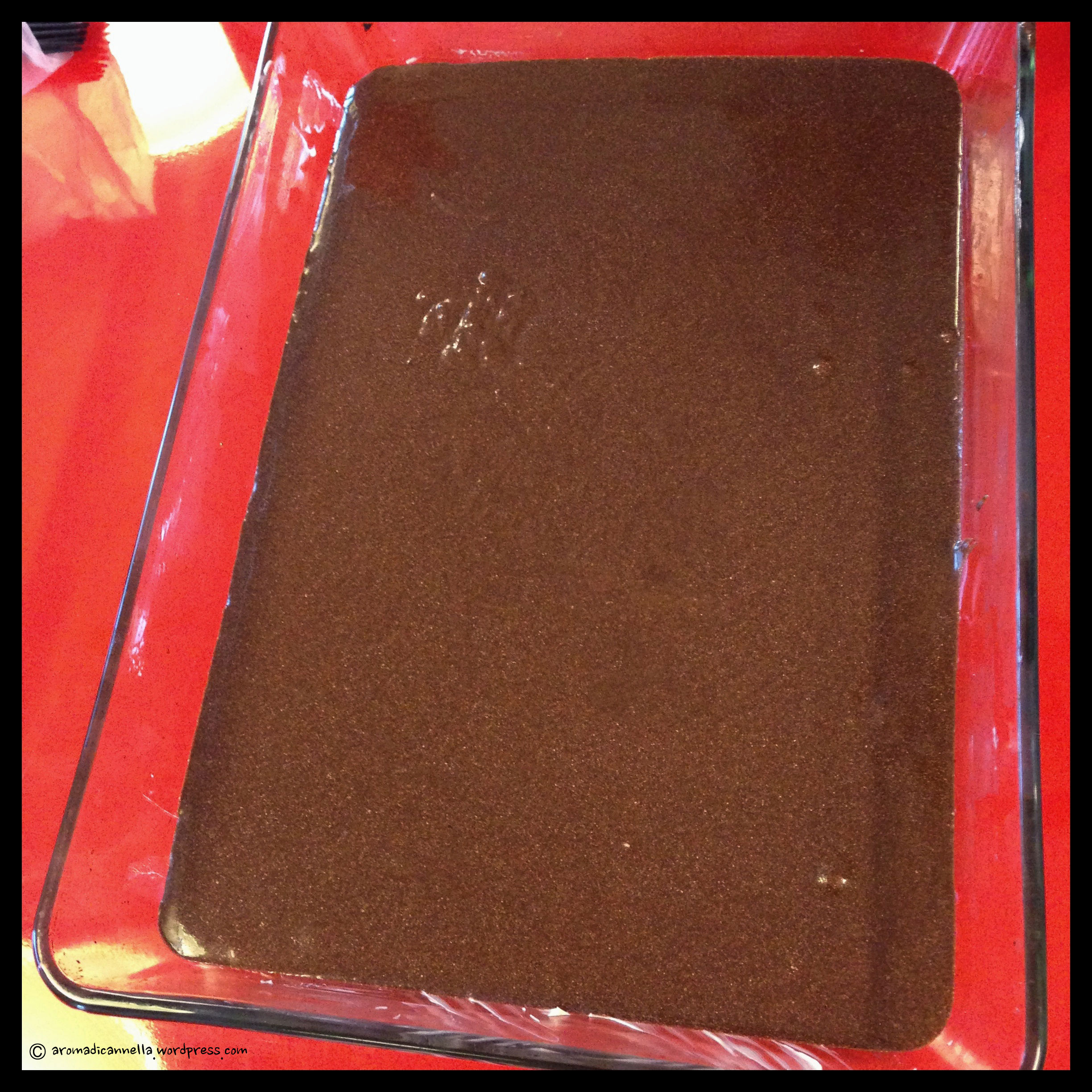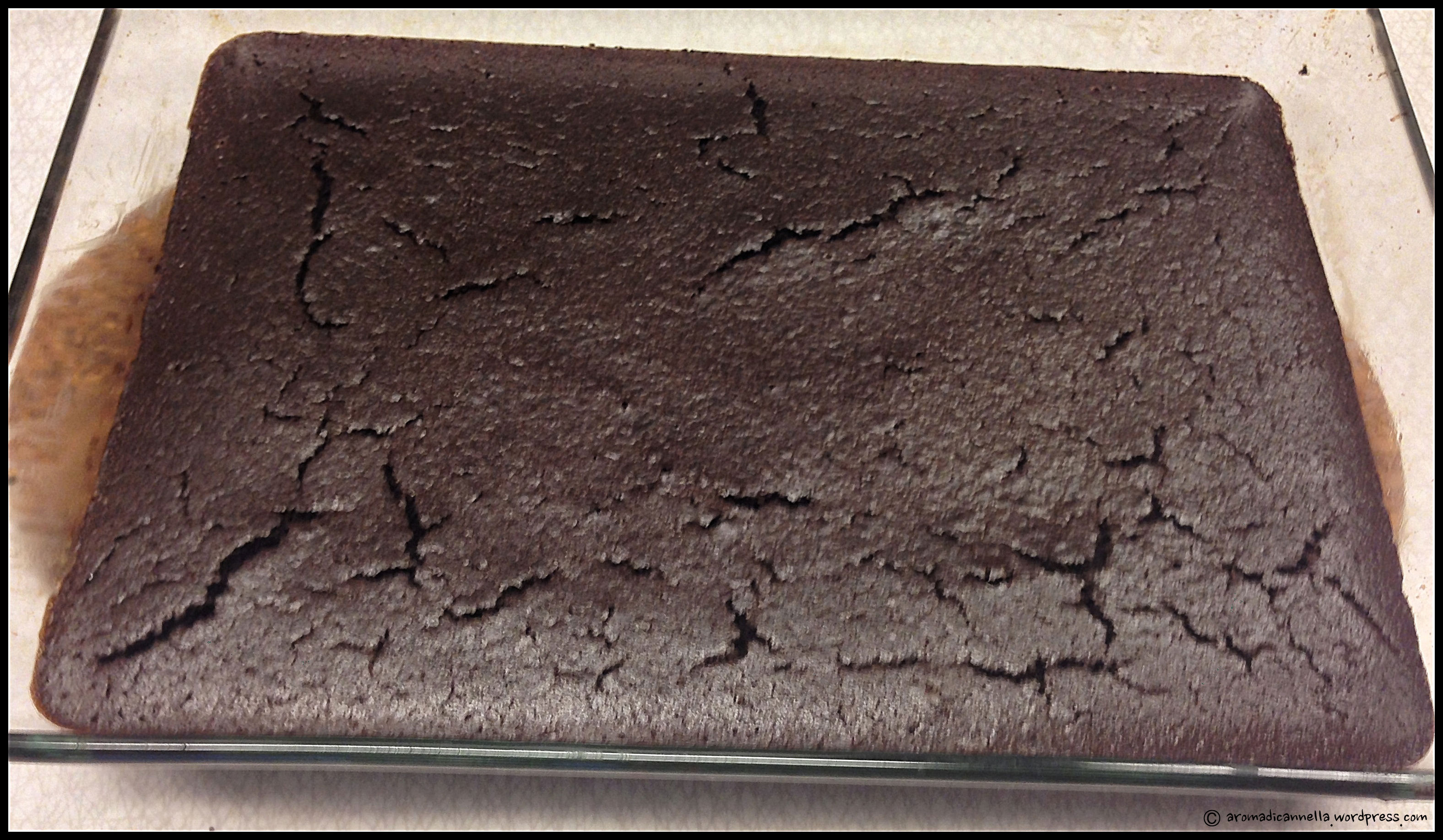 Aggiungete il resto della farina, sempre un po’ alla volta (in questo modo puoi tenere controllata la consistenza, che deve essere omogenea e cremosa). Trasferite il composto in una teglia imburrata (o in uno stampo circolare classico per torte, rivestendolo con carta da forno). Dato l’elevato numero dei commensali e, ancora una volta, gli scarsi strumenti disponibili, ho usato una teglia in vetro su cui di solito ci sta bene un filetto di salmone con patate o una bella lasagna al forno. Credo che questo abbia un po’ penalizzato la cottura, ma nessuno si è lamentato alla fine, quindi meglio così.