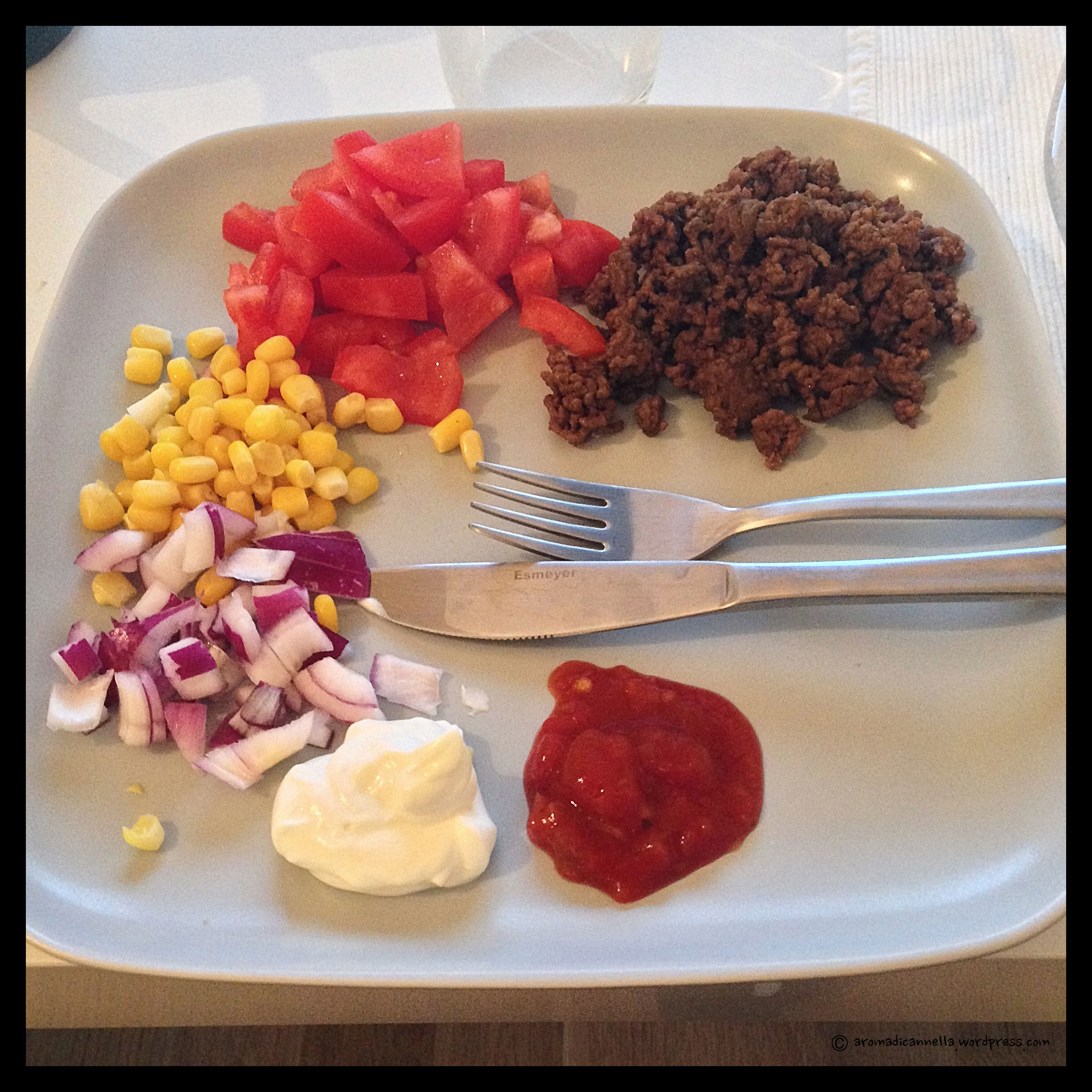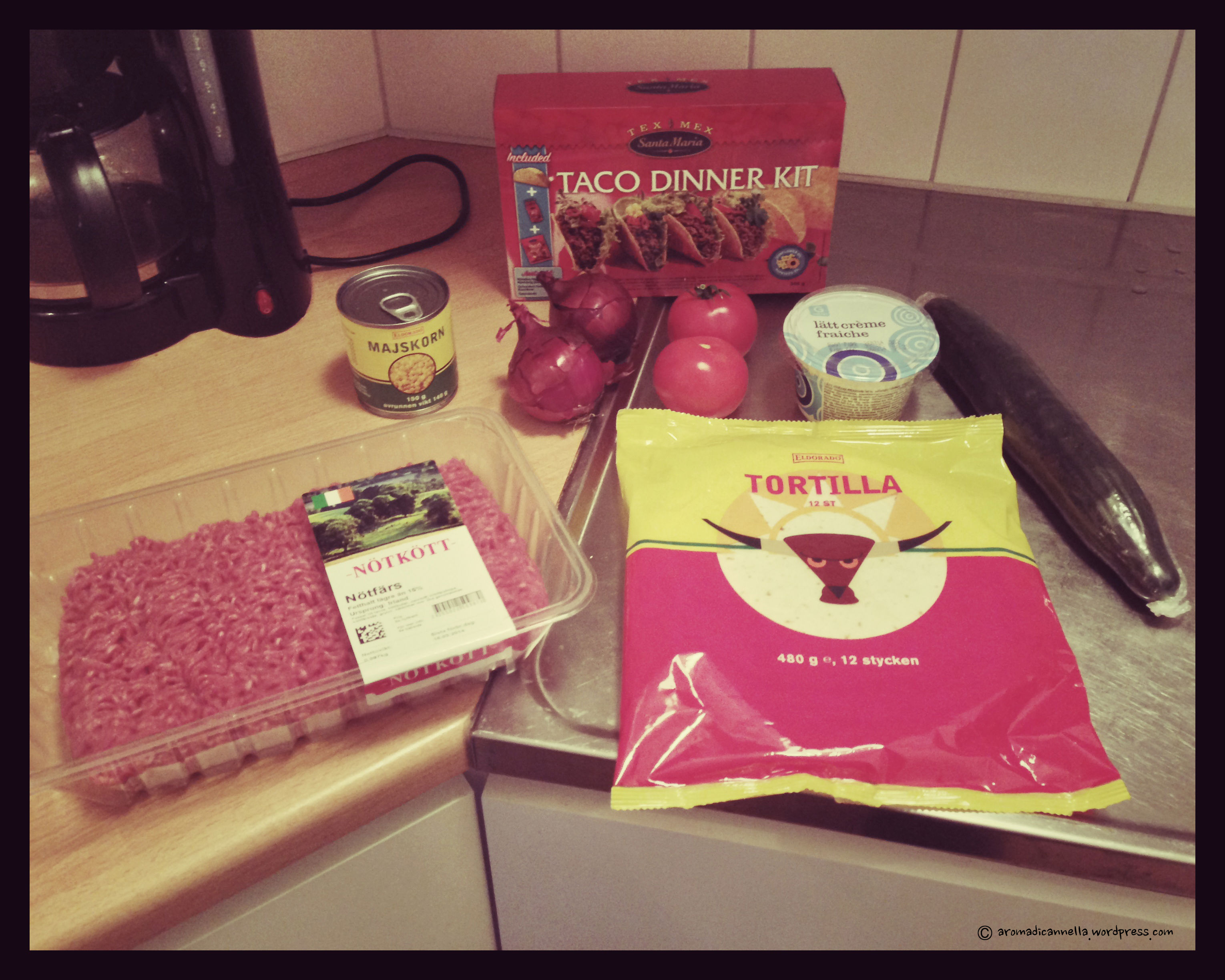 Fatto sta che qui in Svezia ho avuto la mia prima volta con il taco di carne in versione fai-da-te. Contrariamente alle abitudini culinarie italiane che finora mi è capitato di osservare, i tacos rientrano in una delle rapide pietanze a misura di studente (non solo svedese). Facili da preparare e pronti in poco tempo. Adatti per la cena e ad alto contenuto calorico, lasciano lo stomaco in uno stato di soddisfacimento fino alla mattina successiva. In più, nota importante, apportano l’essenziale quantità giornaliera di verdure. Quindi non è proprio un cibo-schifezza.