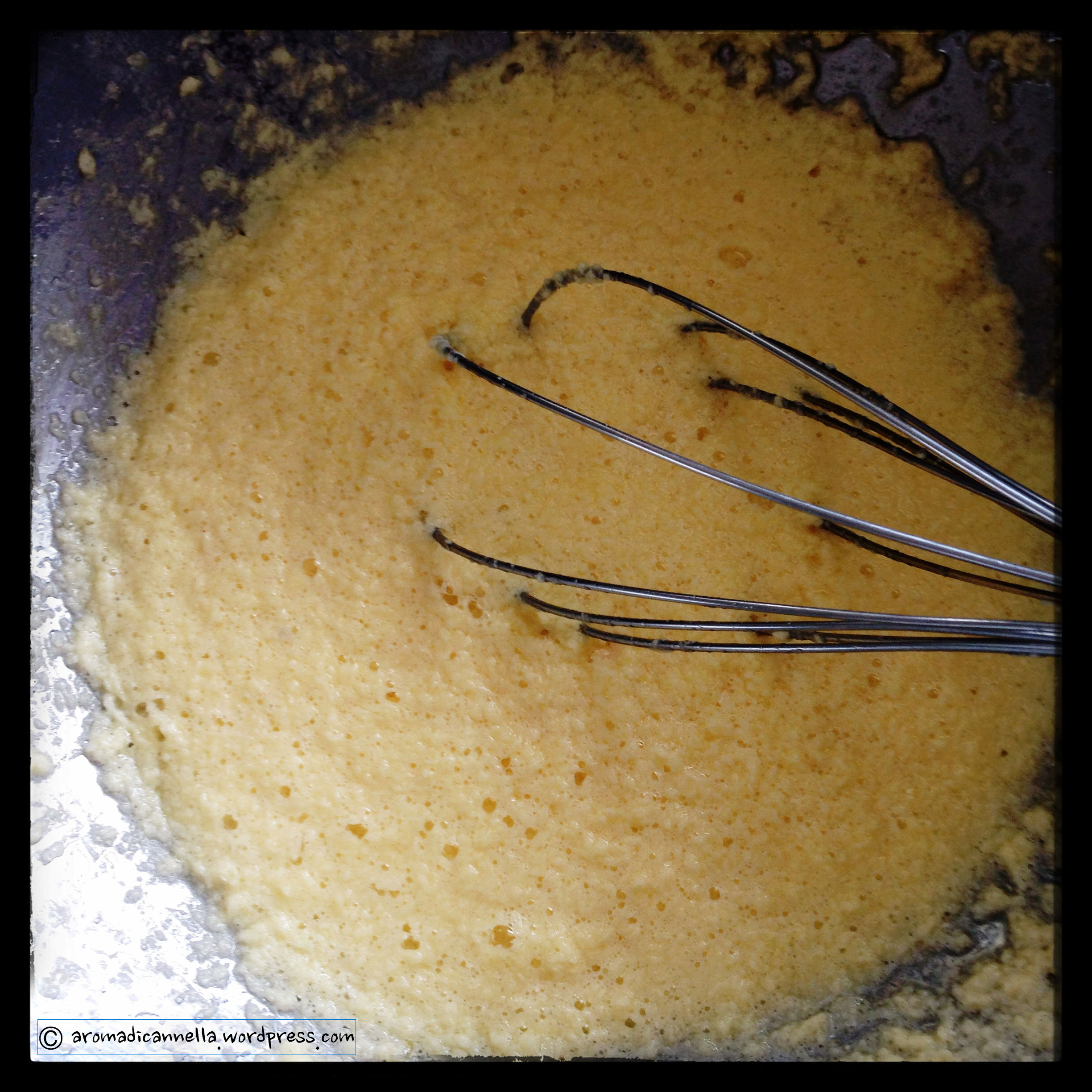 In una terrina lavorate il burro ammorbidito con lo zucchero e aggiungete le uova una alla volta fino a rendere il composto cremoso.