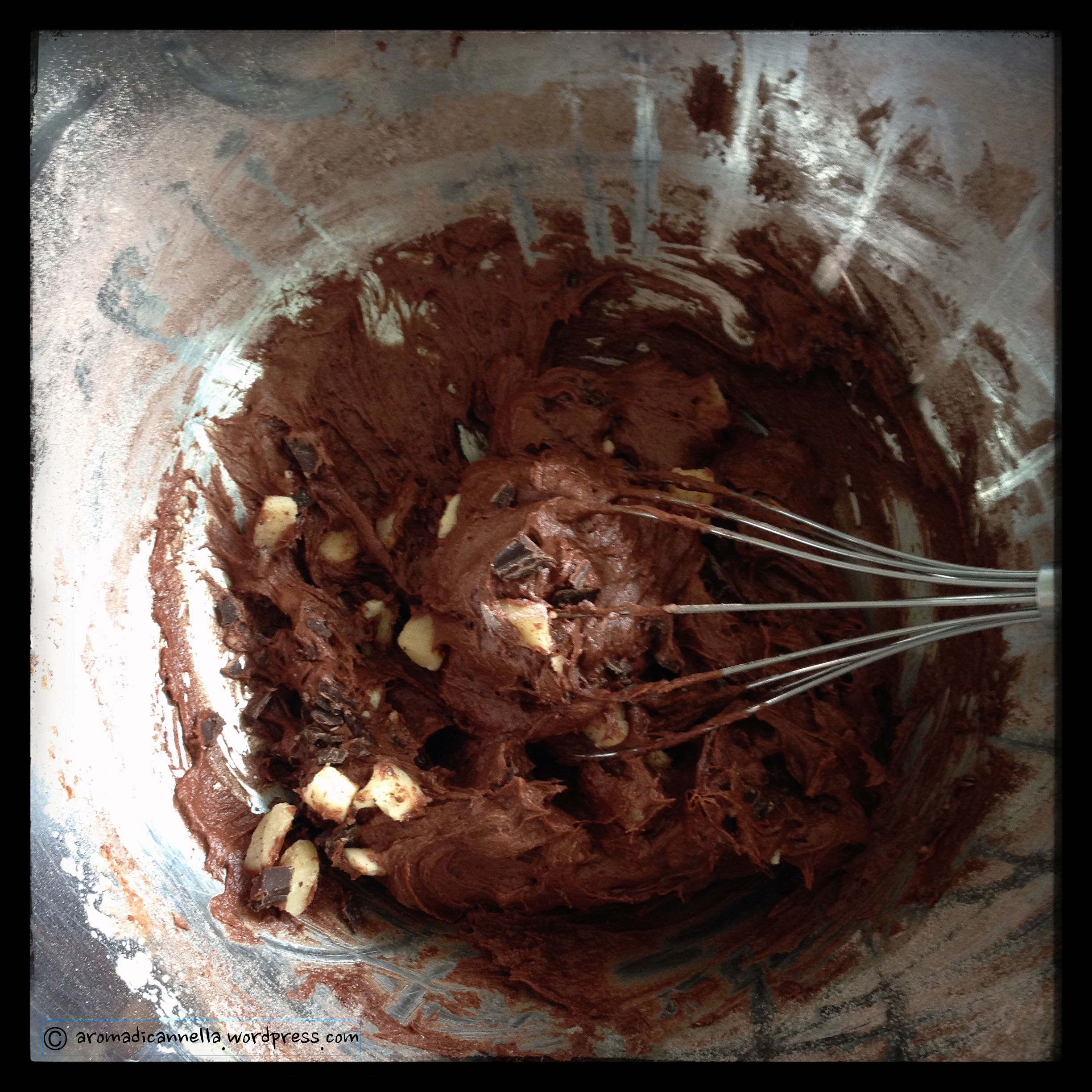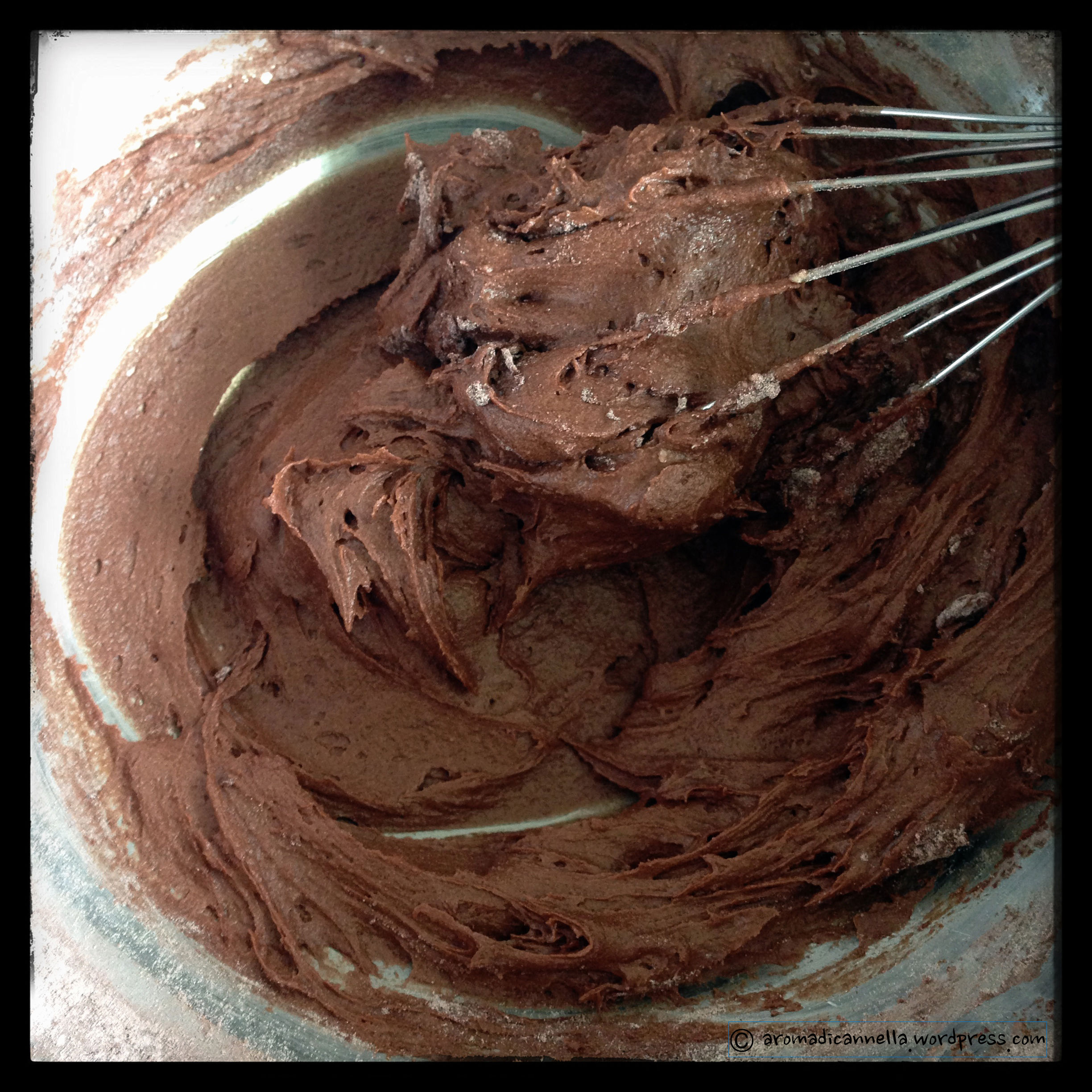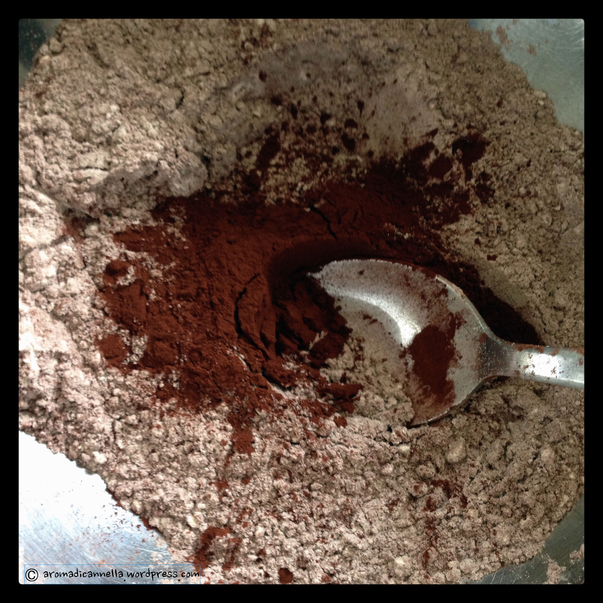In un’altra ciotola unite la farina, il lievito e il cacao ed incorporateli all’impasto, mescolando bene.