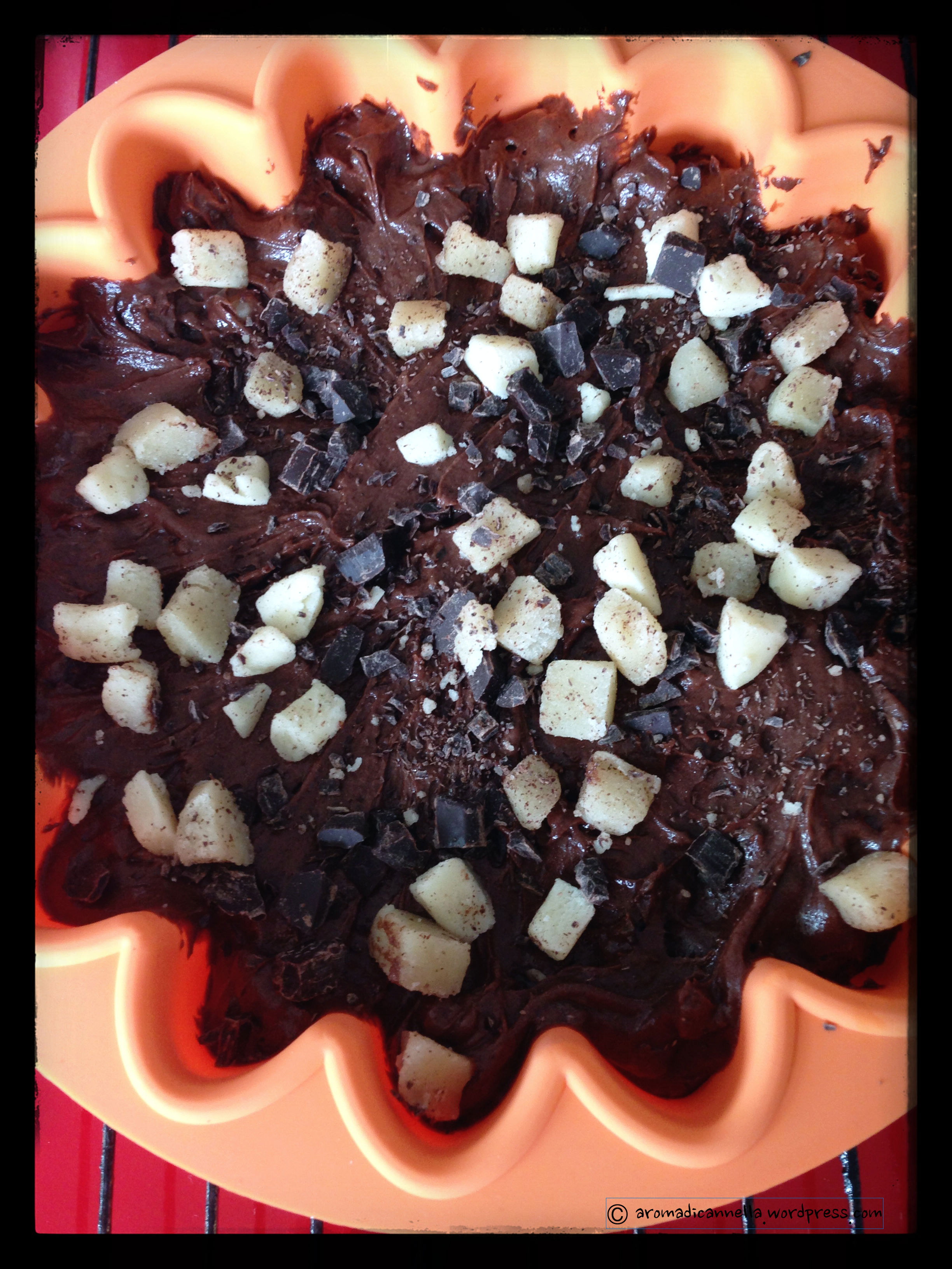 Certo vi chiederete che c’entra l’Eurovision con la cucina. Nulla a dire il vero, ma mi sembrava giusto narrare dell’esperienza. La cucina c’entra però nella fase pre-Eurovision, perchè, giustamente, essendomi svegliata in modalità “pomeriggio e serata a Copenhagen”, la predisposizione allo studio non era delle migliori. Quindi, per chi magari ha già letto un po’ di cosette qui nel blog, si sa che finisco con il preparare un dolce per la gioia delle mie coinquiline. Soprattutto se c’è il cioccolato. Lo so, son un po’ monotona ultimamente perché sforno solo torte con il cacao, ma devo finire la confezione che ho comprato per la torta Guinness. In questo caso avevo pure da finire il marzapane e la pasta di mandorle, quindi perchè non mischiare il tutto?
