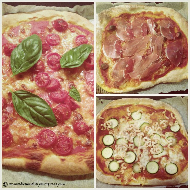 Io ho preparato tre pizze, usando un po’ più di farina di quella indicata, che era pure di farro. La miscela è venuta buona, quindi se siete a corto di kamut o farro, potete incorporarle senza problemi.