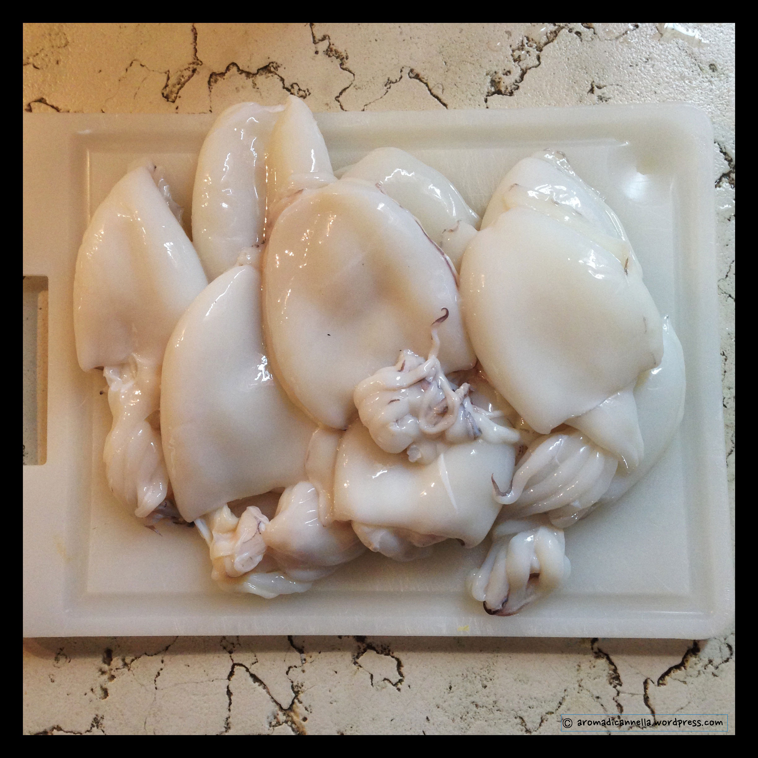 Lavate bene le seppie e lessatele per 15 minuti in acqua bollente con succo di limone. Una volta cotte, con l’aiuto delle forbici tagliatele a pezzetti.