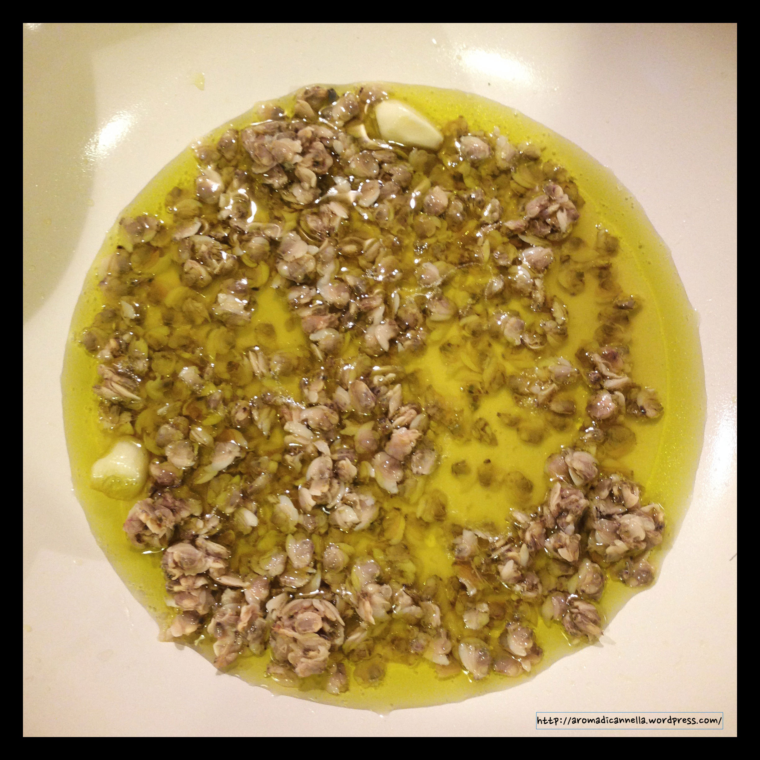 un vasetto di vongole al naturale (ma potete usare anche le vongole fresche, verrà sicuramente più buono, ma io non le avevo in casa)