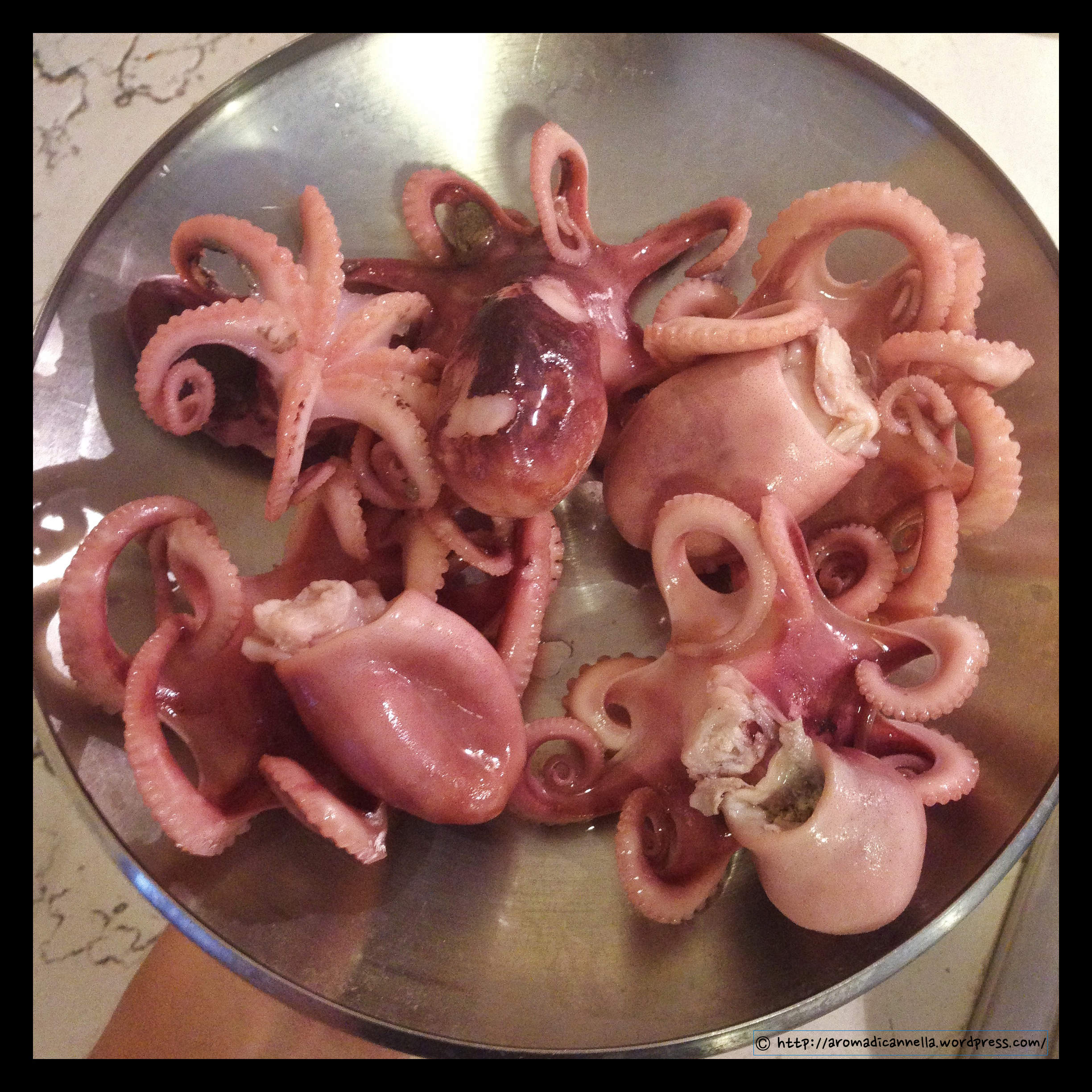 Questa volta è il turno del polipo, o meglio, dei polipetti. La mami era da un pezzettino che suggeriva di prenderli, quindi detto fatto, pronti per il pranzo del giovedì.