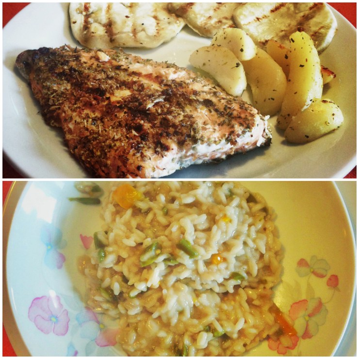 Io mi sono occupata del secondo di pesce e la mami della cottura alla griglia. Avevamo comprato appositamente dei filetti di salmone e, avendo vista in settimana una fantastica ricetta del pesce spada all’origano della mia amica foogblogger Manuela, ho deciso di adottare l’idea dell’origano come spezia principale del condimento. Quindi nuova ricettina light per la rubrica “In Cucina con Ombrina”.