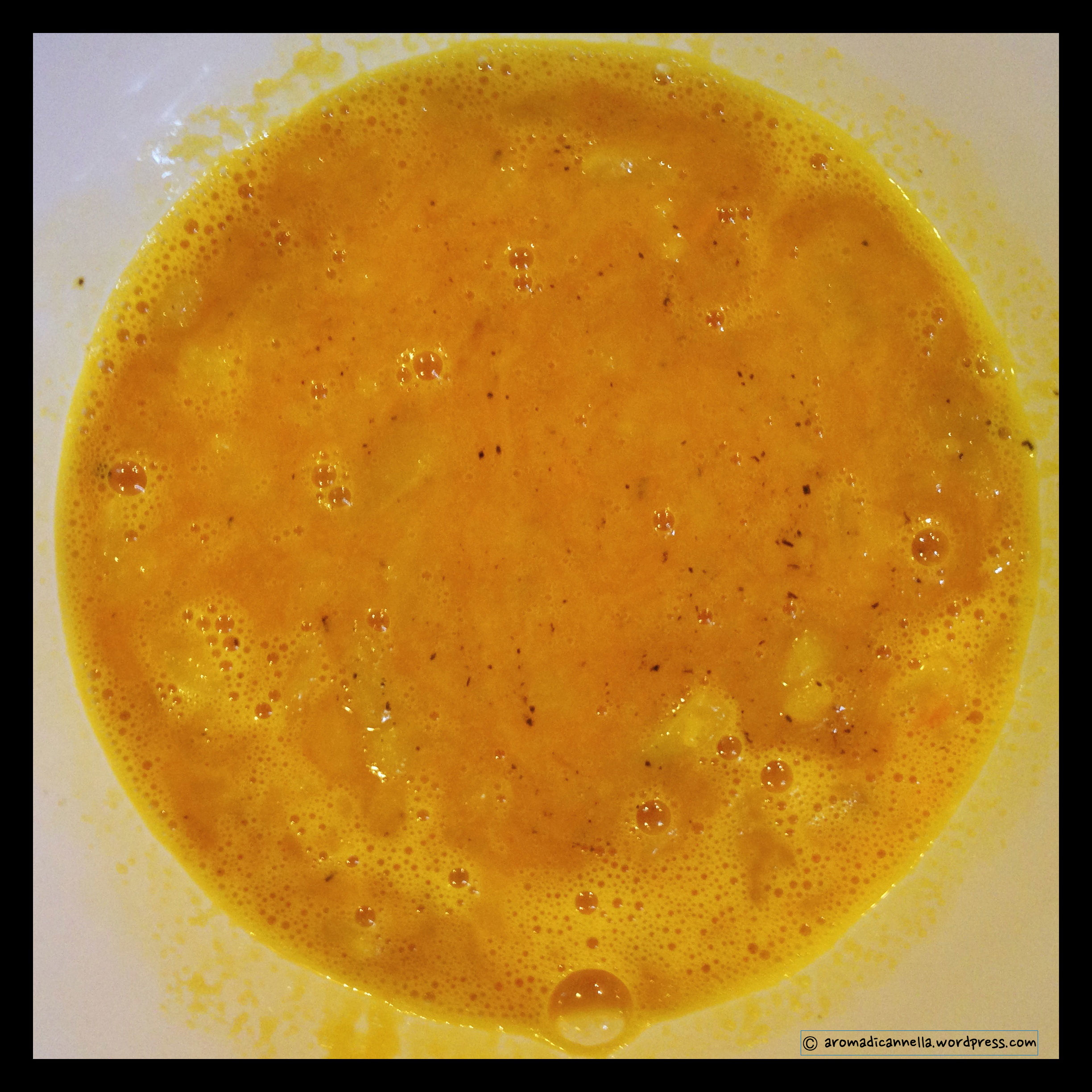 In una padella antiaderente (vi consiglio di diametro piccolo così l’omelette viene alta un paio di centimetri), stufate la cipolla con poca acqua. Sbattete le uova e unite le patate, mescolando e rompendole un po’ con la forchetta a mo’ di purea, ma lasciando qualche tocchetto. Salate a piacere e aggiungete il rosmarino.