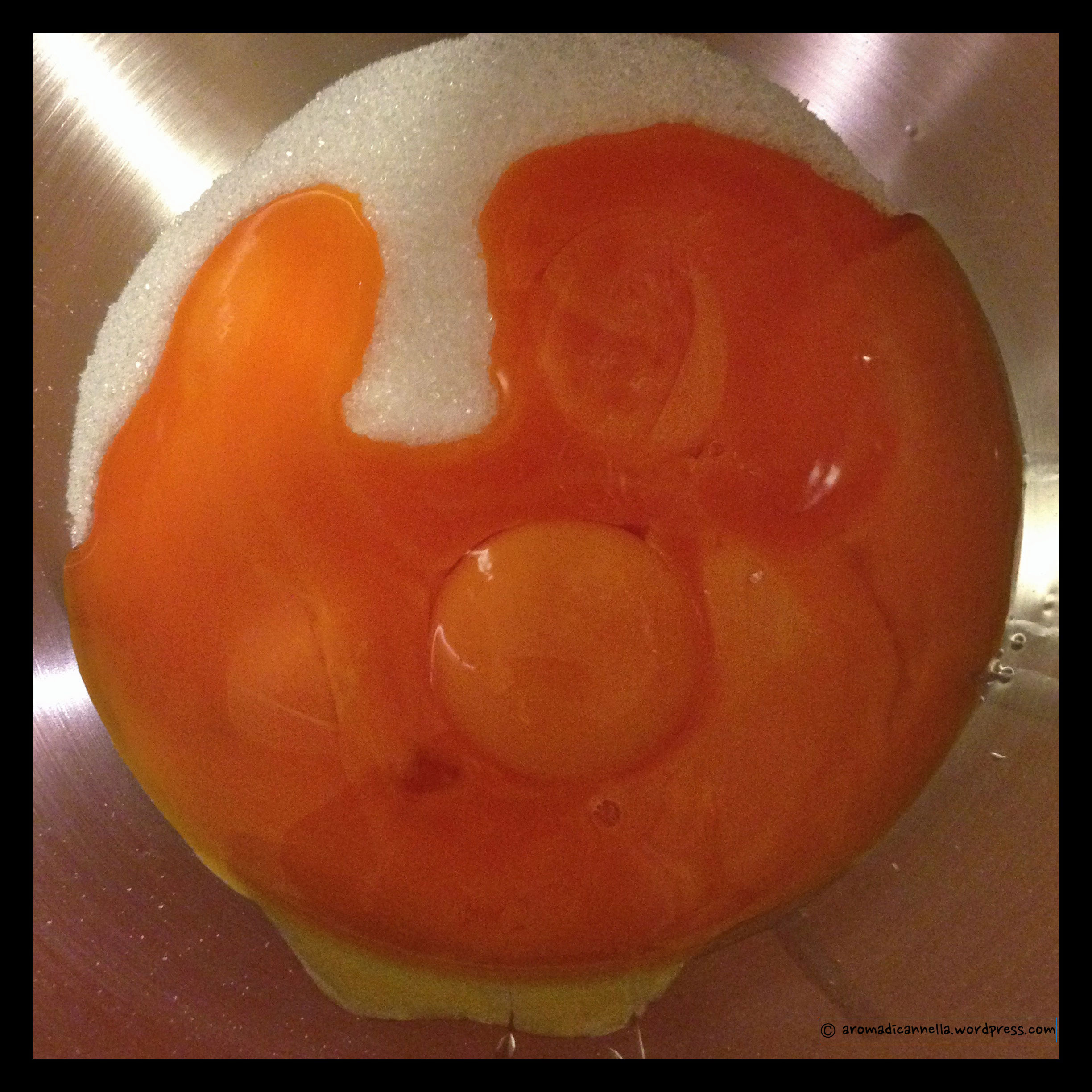 Nel frattempo sbattete i tuorli con zucchero fino ad ottenere un composto spumoso e poi aggiungete la farina.
