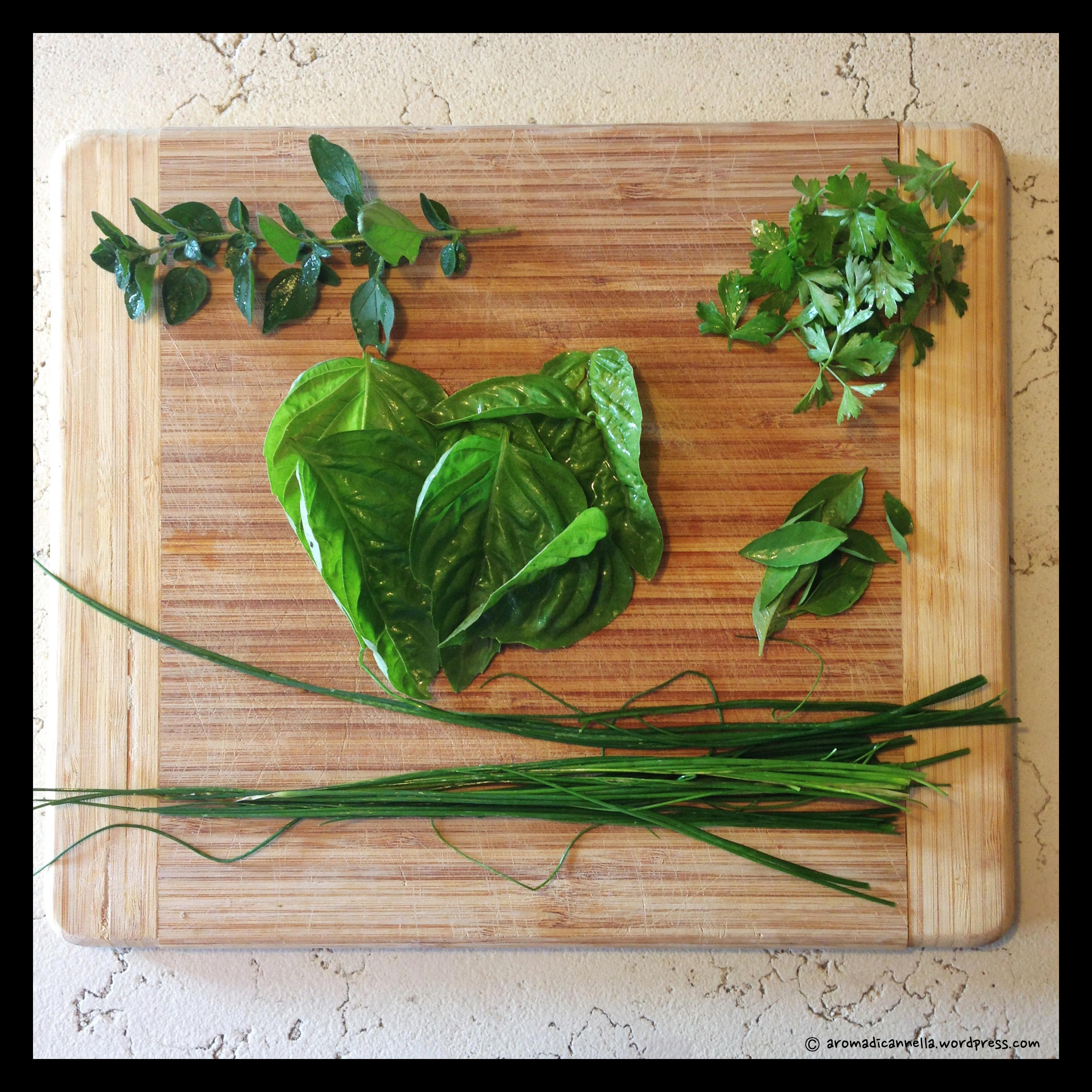 E a proposito di queste ultime, faccio un breve gioioso annuncio a cui seguirà presto un post dedicato: il mio basilico svedese è nato e cresciuto rigogliosamente, per cui oggi ha ufficialmente fatto ingresso nelle preparazioni di Aroma di Cannella.