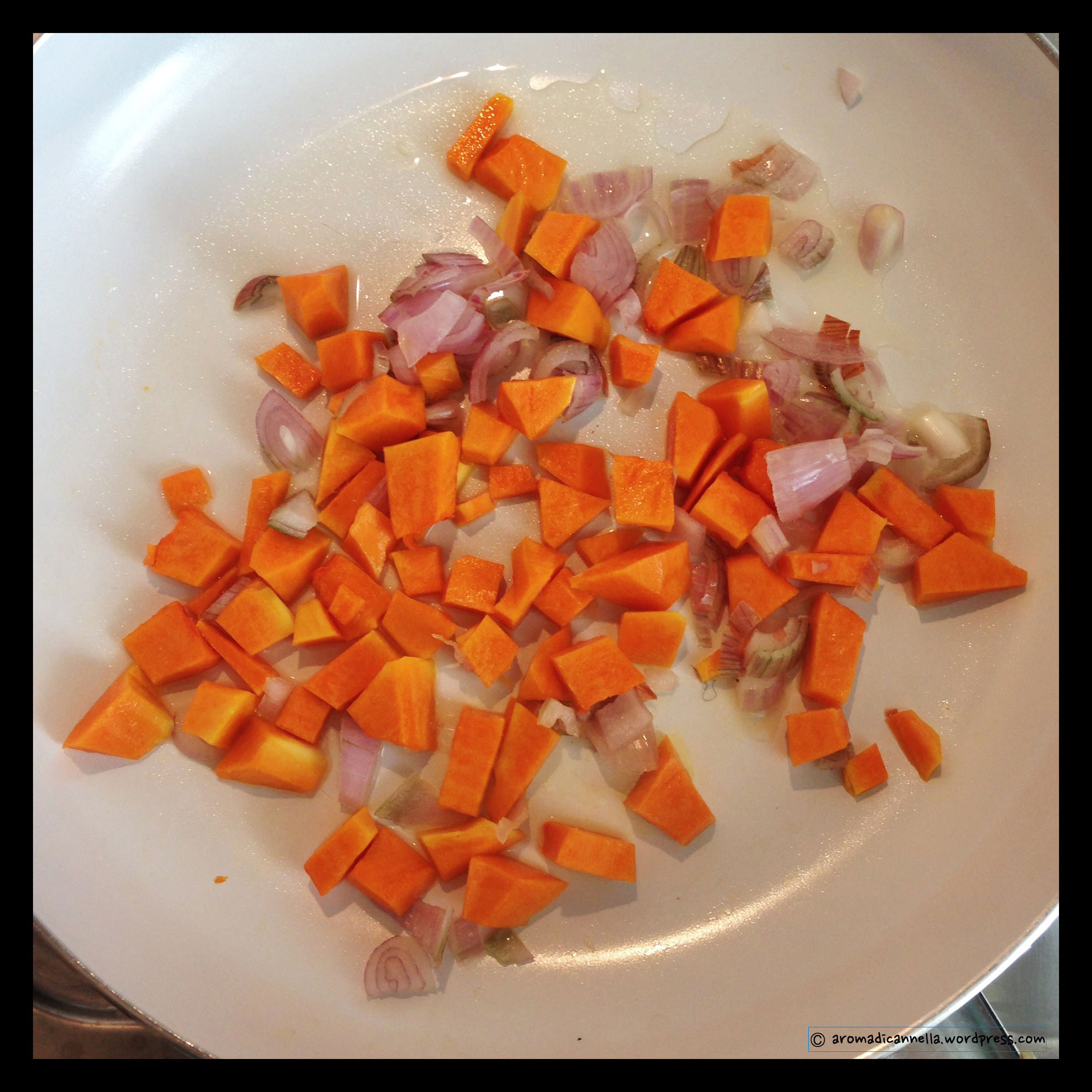 Come avevo previsto nel post della ricettina della crema di zucca, oggi è in arrivo un’altro primo piatto a base del dolce ortaggio – e nel weekend ne prevedo altro in arrivo.