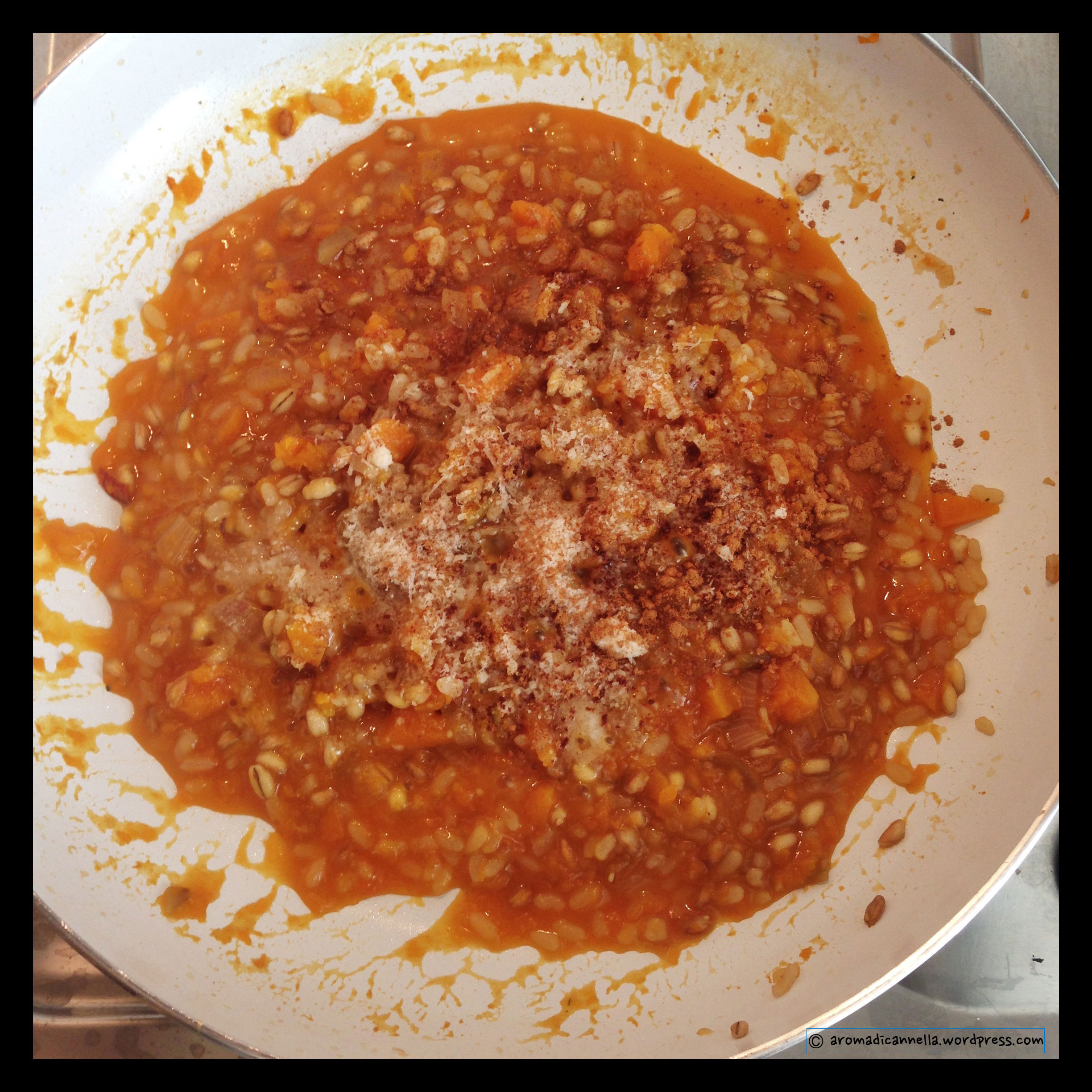 Una volta cotto, spegnete il fuoco e aggiungete il parmigiano, mantecando il mix per qualche minuto. Unite infine la cannella a piacere.