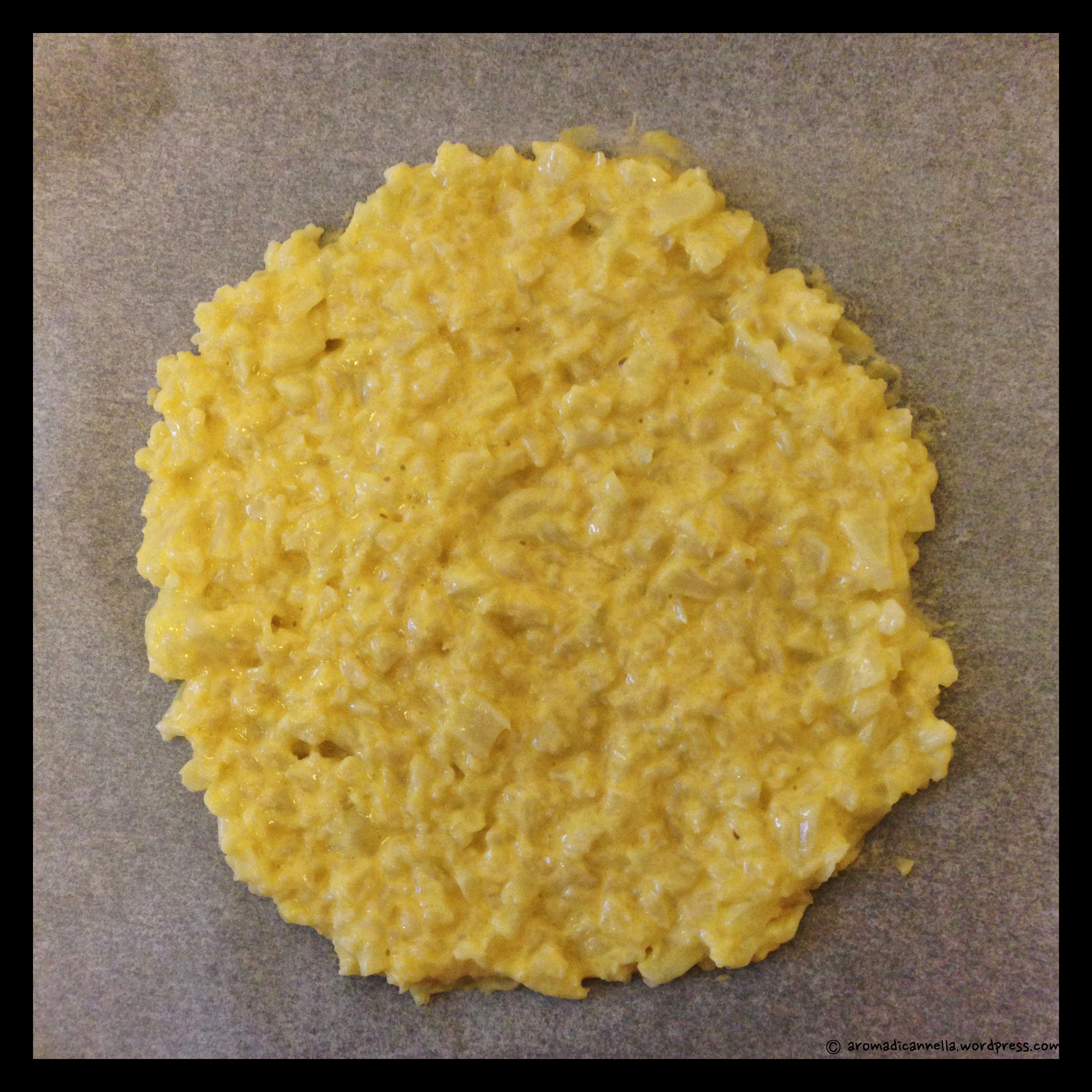 Dopo aver cotto a vapore il cavolfiore, riducetelo in tocchetti (aiutatevi anche con un cucchiaio per ridurlo in poltiglia), ponetelo in una ciotola e unite l’uovo sbattuto, il sale e la farina. Mescolate bene fino ad ottenere un impasto omogeneo e ponetelo su un foglio di carta forno, dandogli la forma tonda della pizza.