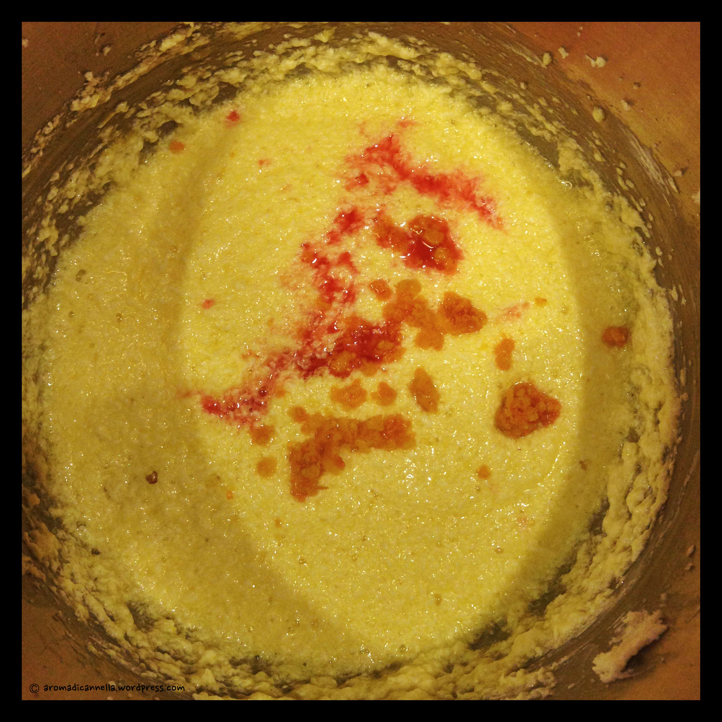 Lavorate bene la margarina ammorbidita e lo zucchero con l’aiuto di uno sbattitore elettrico. Poi aggiungete le uova, una alla volta, e poi il succo di arancia e la scorza.