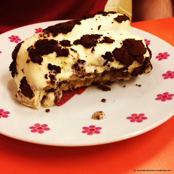E sarà la fama che si porta dietro, ma tutti i miei amici non italiani ne fanno sempre grande richiesta. Assaggiare il tiramisù era infatti uno dei sogni di S., la mia super amica nepali-canadese, a cui ne ho fatto provare uno super buono da pasticceria quando è venuta a trovarmi assieme a L. lo scorso giugno (caspita, come vola il tempo! Mancate ragazze).
