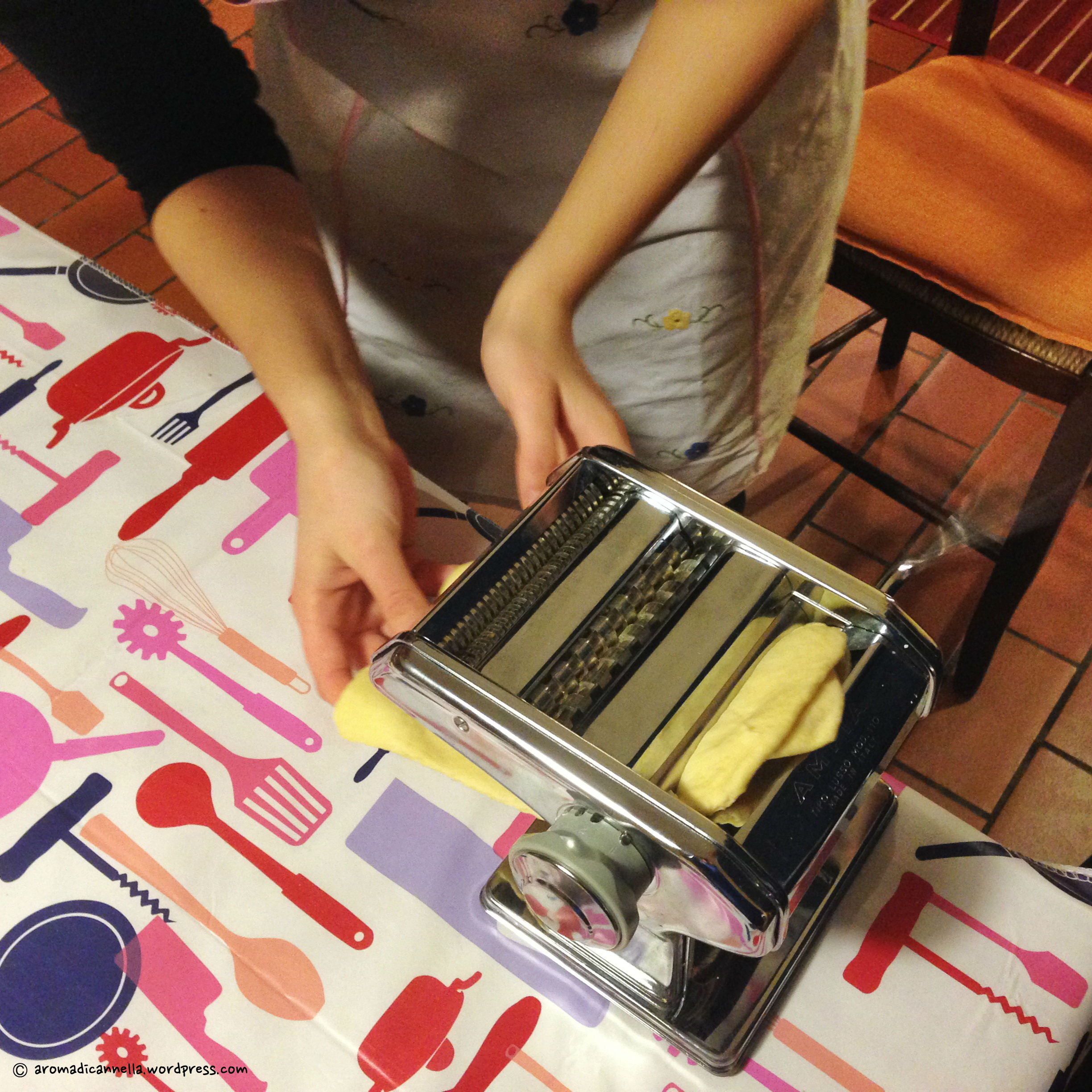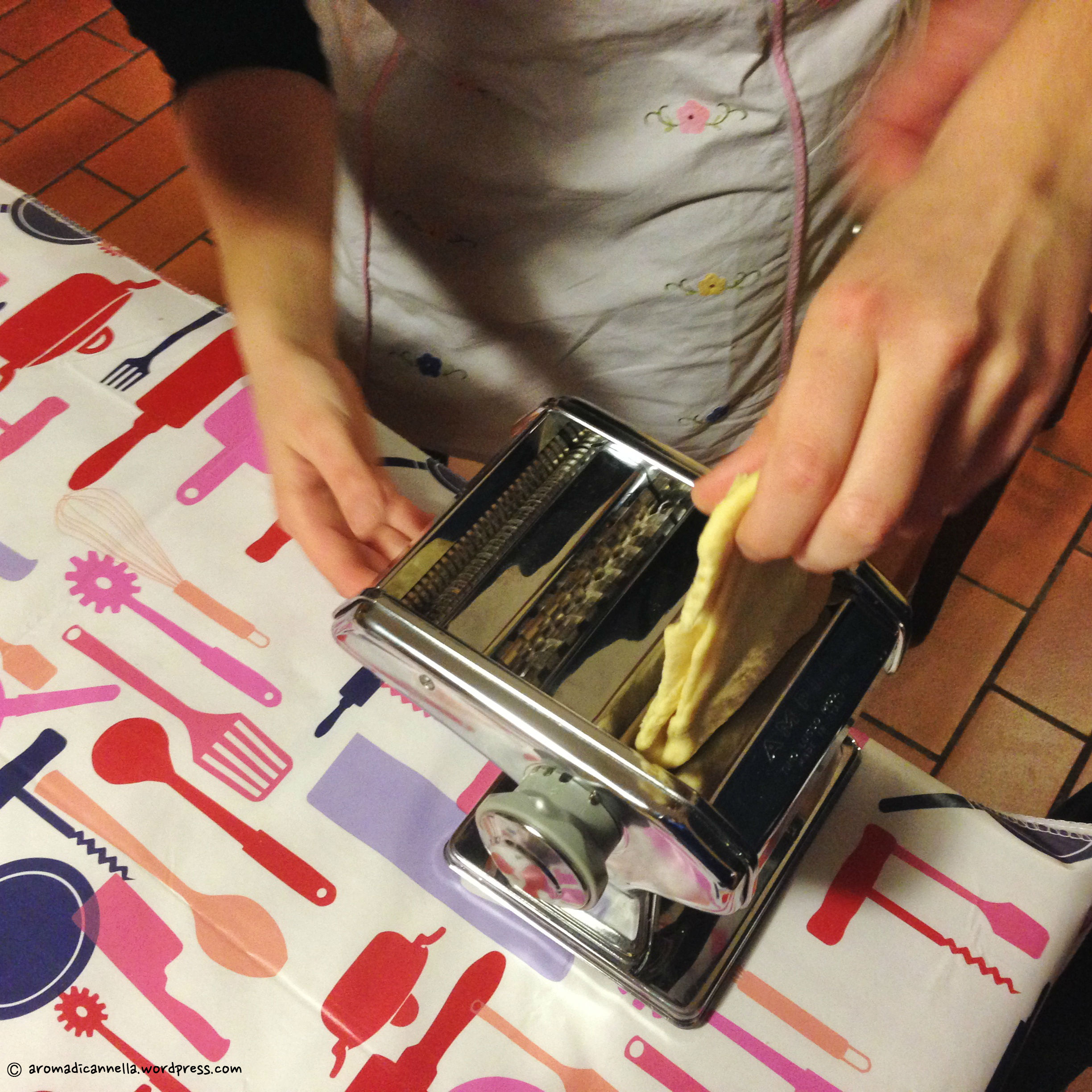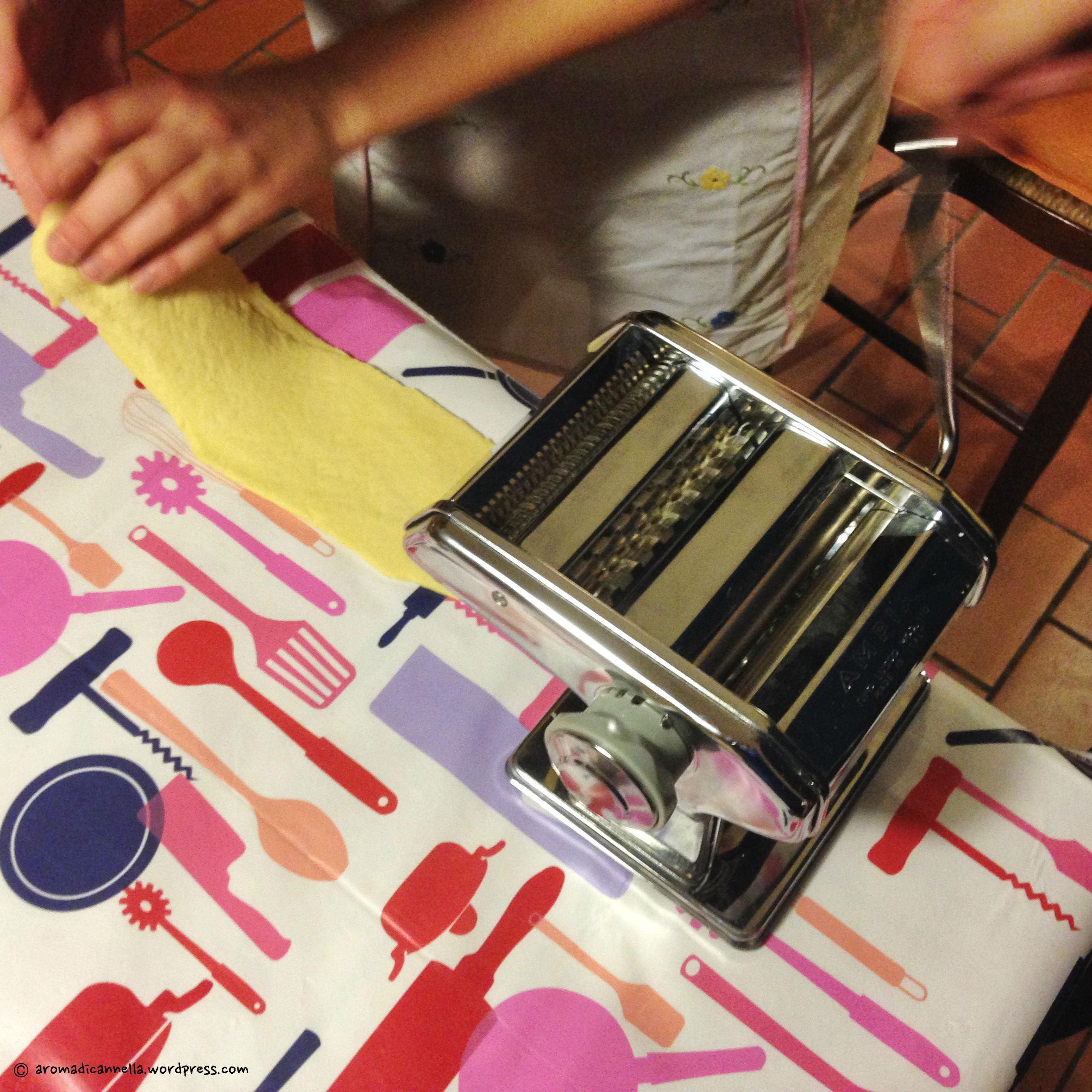 Inoltre ho sperimentato anche il tirapasta della nonna (sì, la mitica nonna del pasticcio), che mi ha gentilmente ceduto l’attrezzo e promesso che, ‘co ‘riva il caldo, mi insegnerà a fare le tagliatelle e le lasagne all’uovo (super felice!).