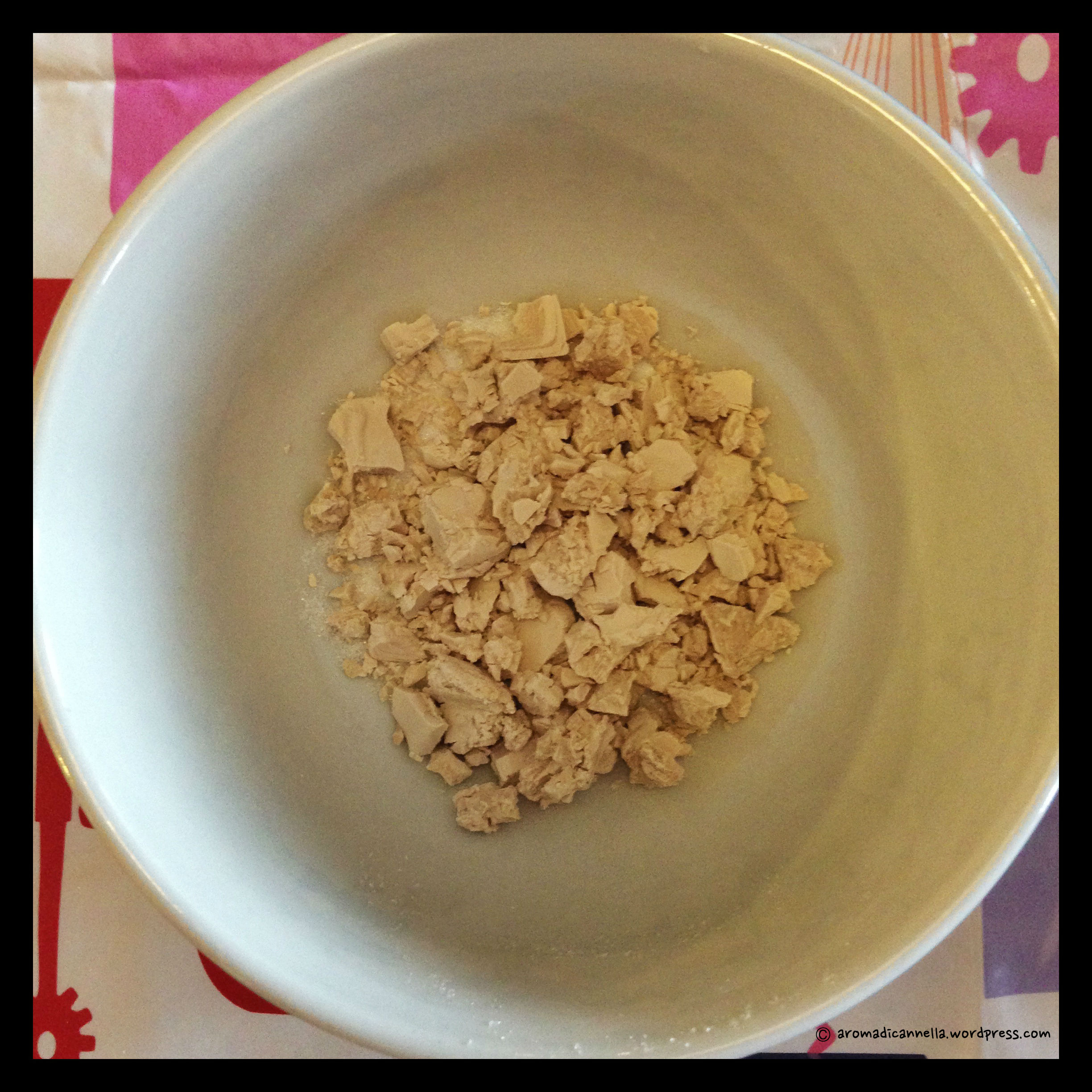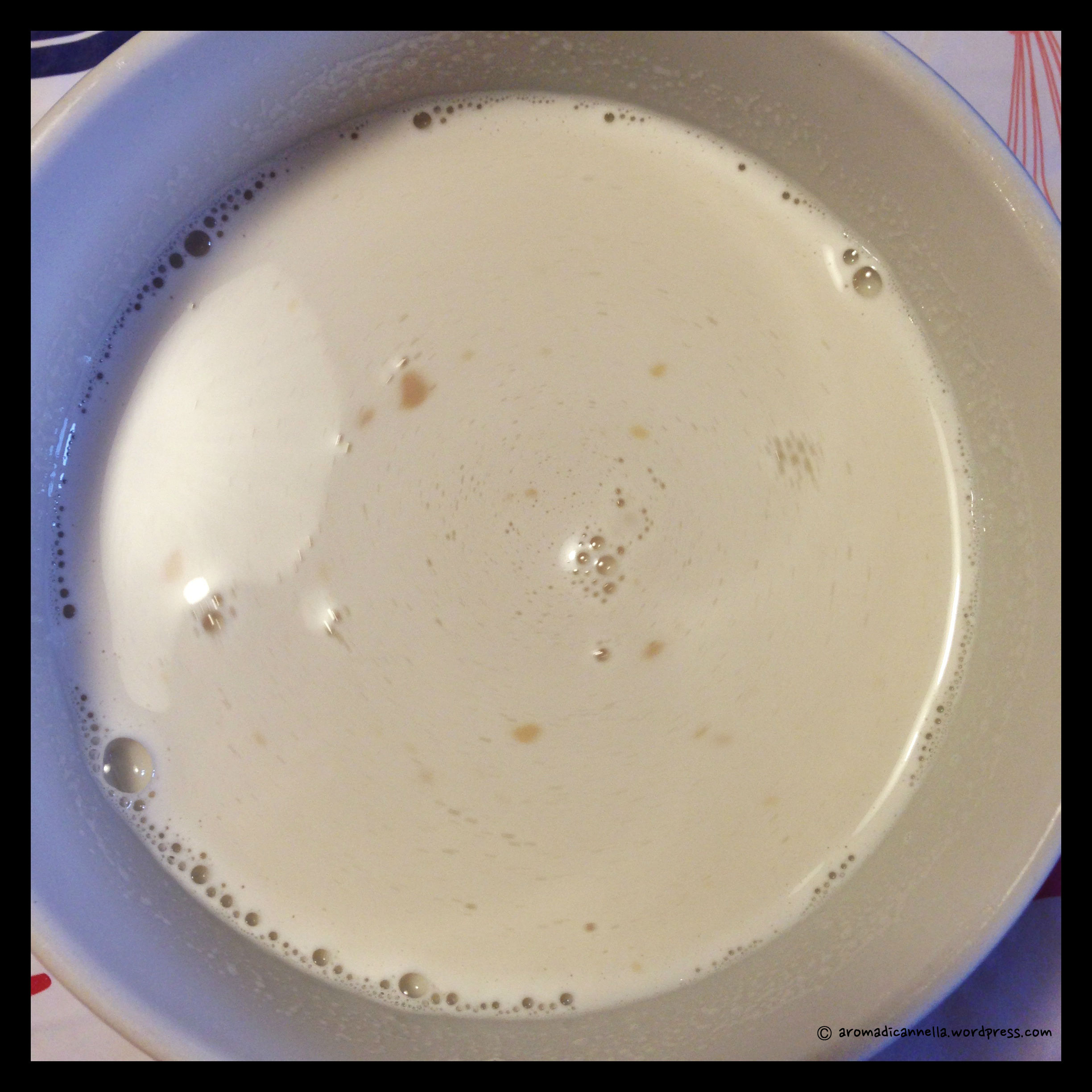 Cominciate sciogliendo il lievito e lo zucchero nel latte, che avrete fatto intiepidire per un paio di minuti.