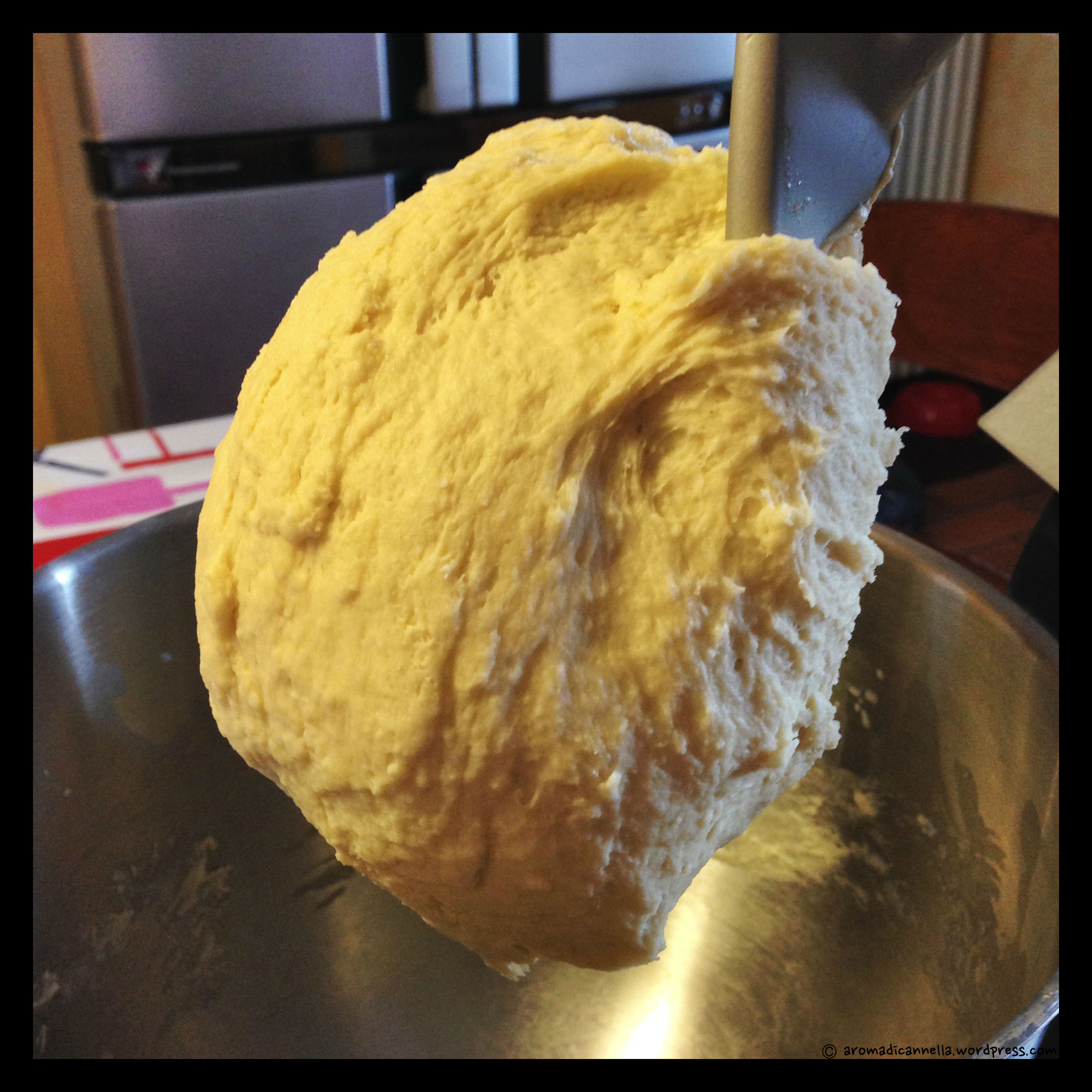 Quando il latte è assorbito, unite l’uovo, l’olio e il sale e lavorate fino a quando l’impasto sarà bello liscio, morbido ed elastico. In sostanza deve rimanere attaccato tutto al gancio e in mano devo risultare non appiccicoso e facile da lavorare.
