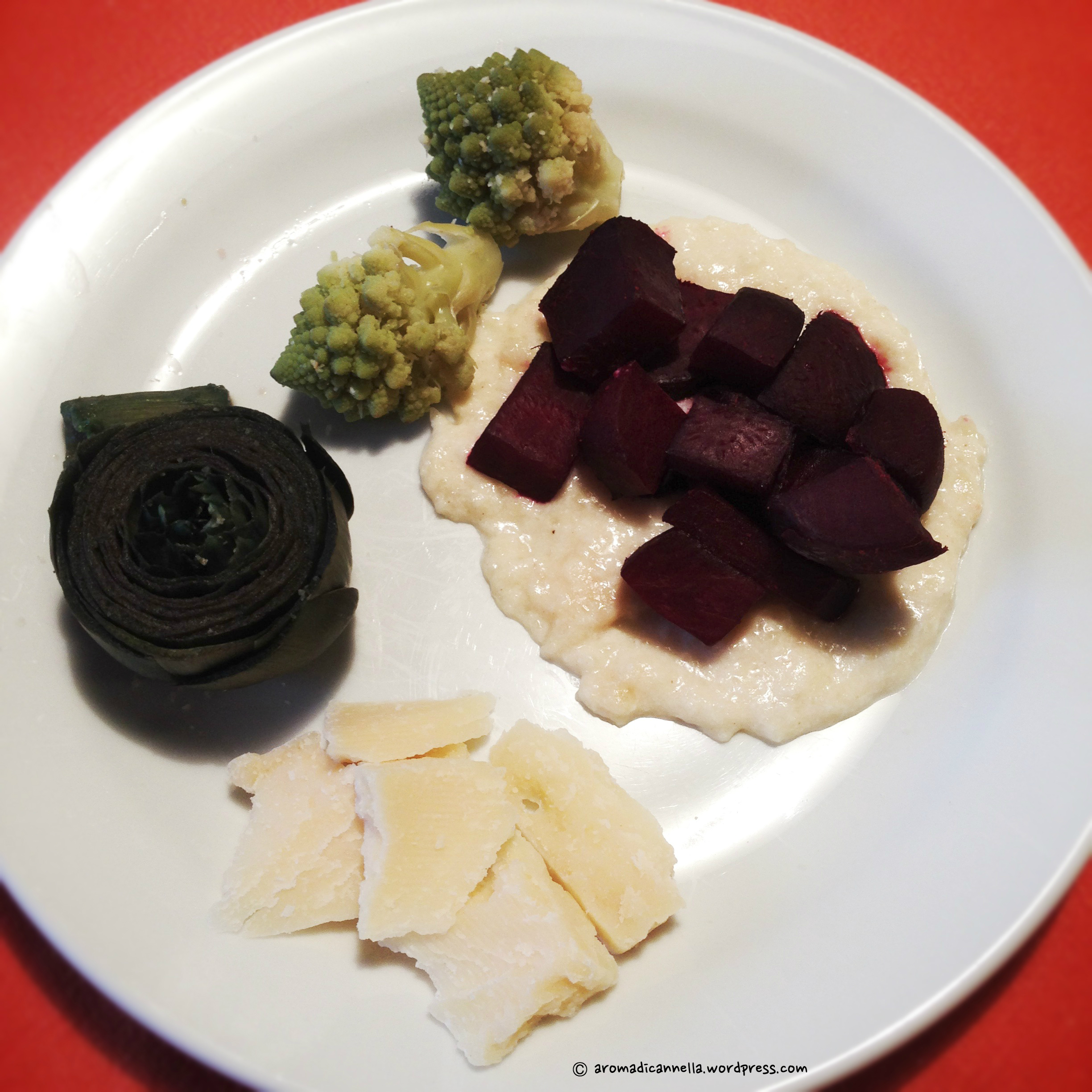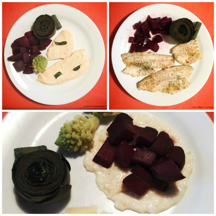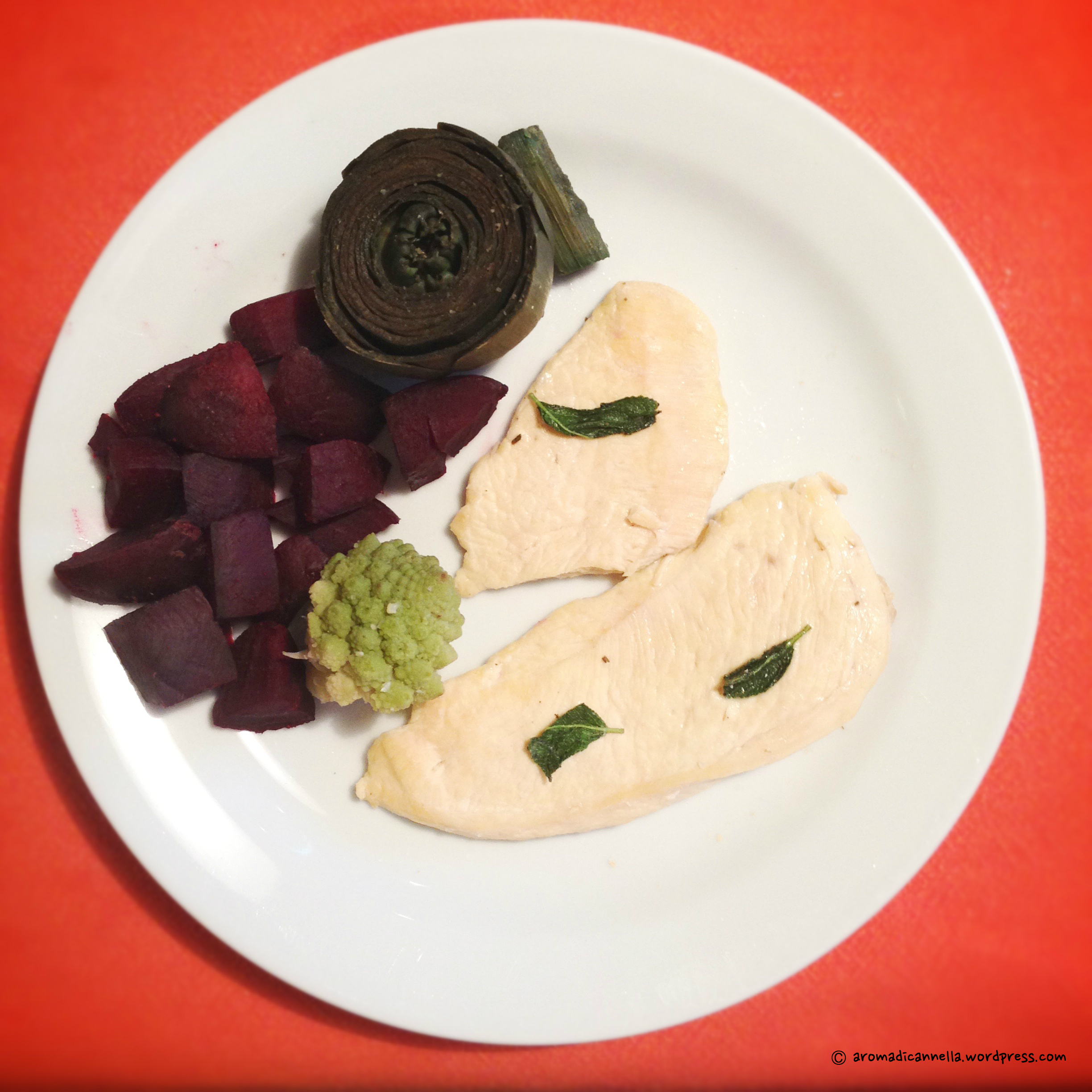 Nel piatto della mami, invece, barbabietole e carciofi sono stati accompagnati da petto di pollo alla salvia (versione carnivora, e sottolineo, anche la mami è onnivora).