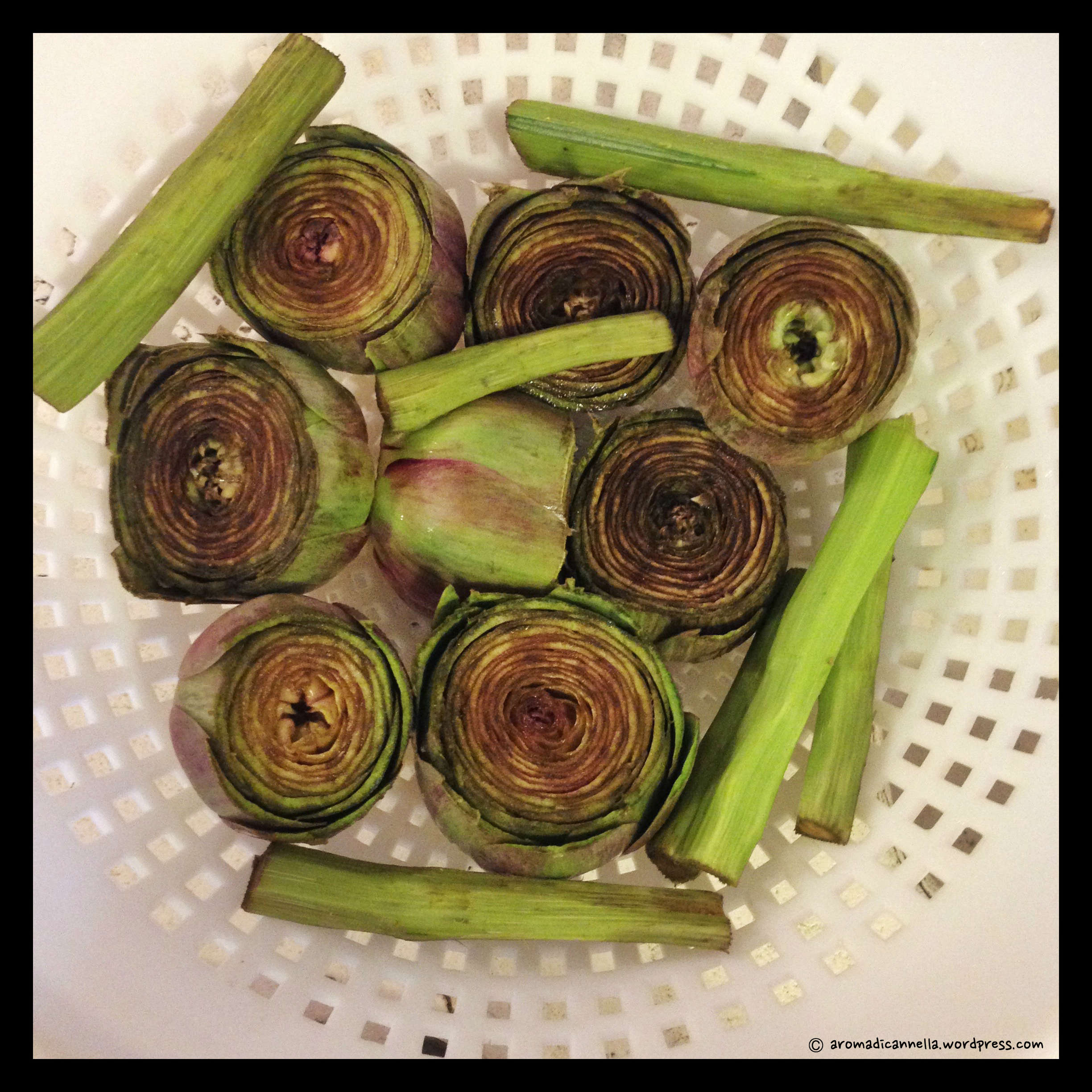 Pertanto ieri ho cominciato imparando finalmente come cucinare i carciofi in umido che, sinceramente, non avevo mai preparato perchè è sempre stato l’onere del papi. E questa, quindi, è la prima ricetta di oggi.