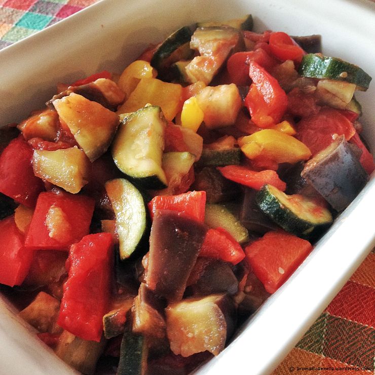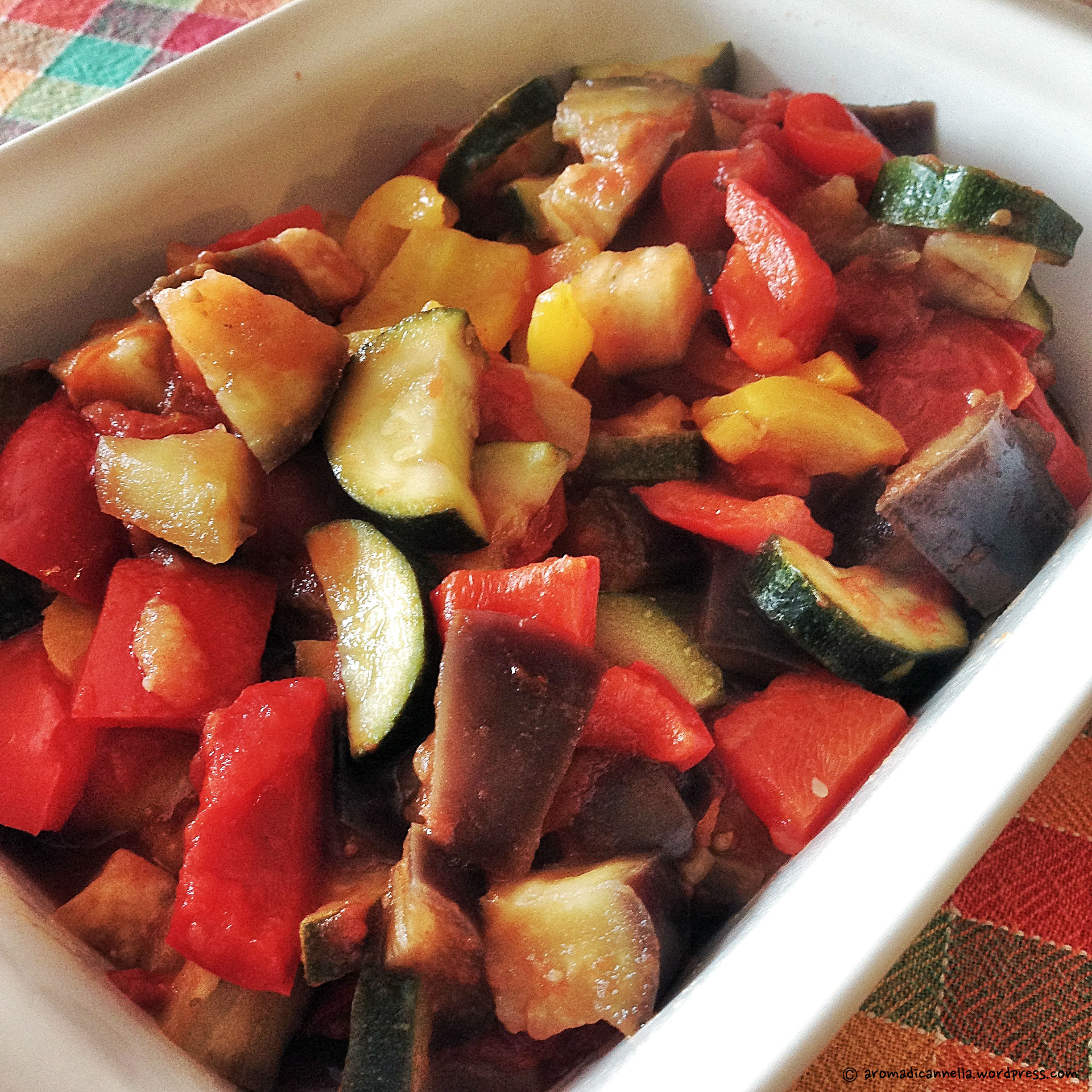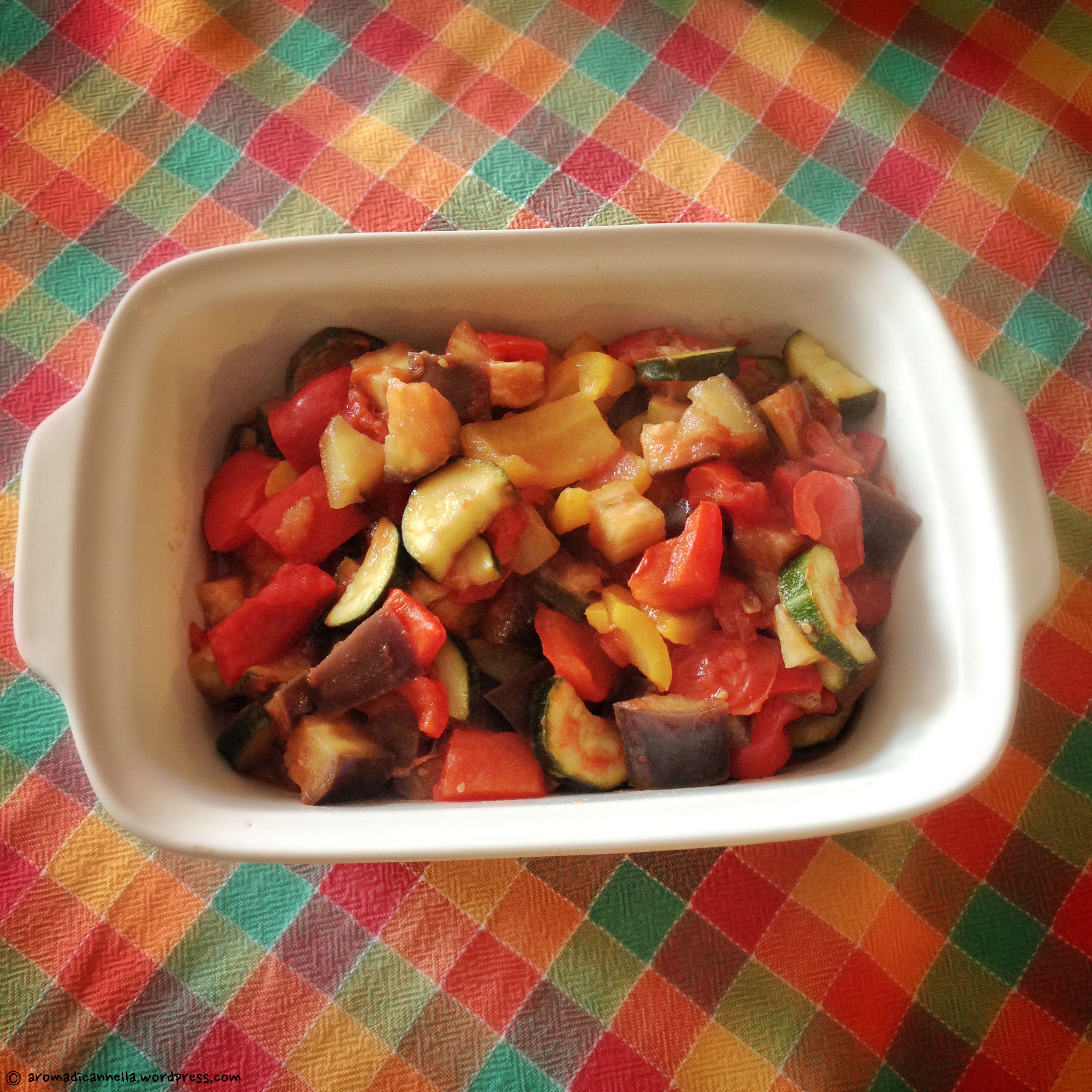 Quando i pomodori saranno ben cotti, trasferite la passata in una ciotola, lasciandone un po’ nella padella per la cottura della ratatouille (così non dovrete aggiungere nè olio nè acqua, avendo così una preparazione molto light).