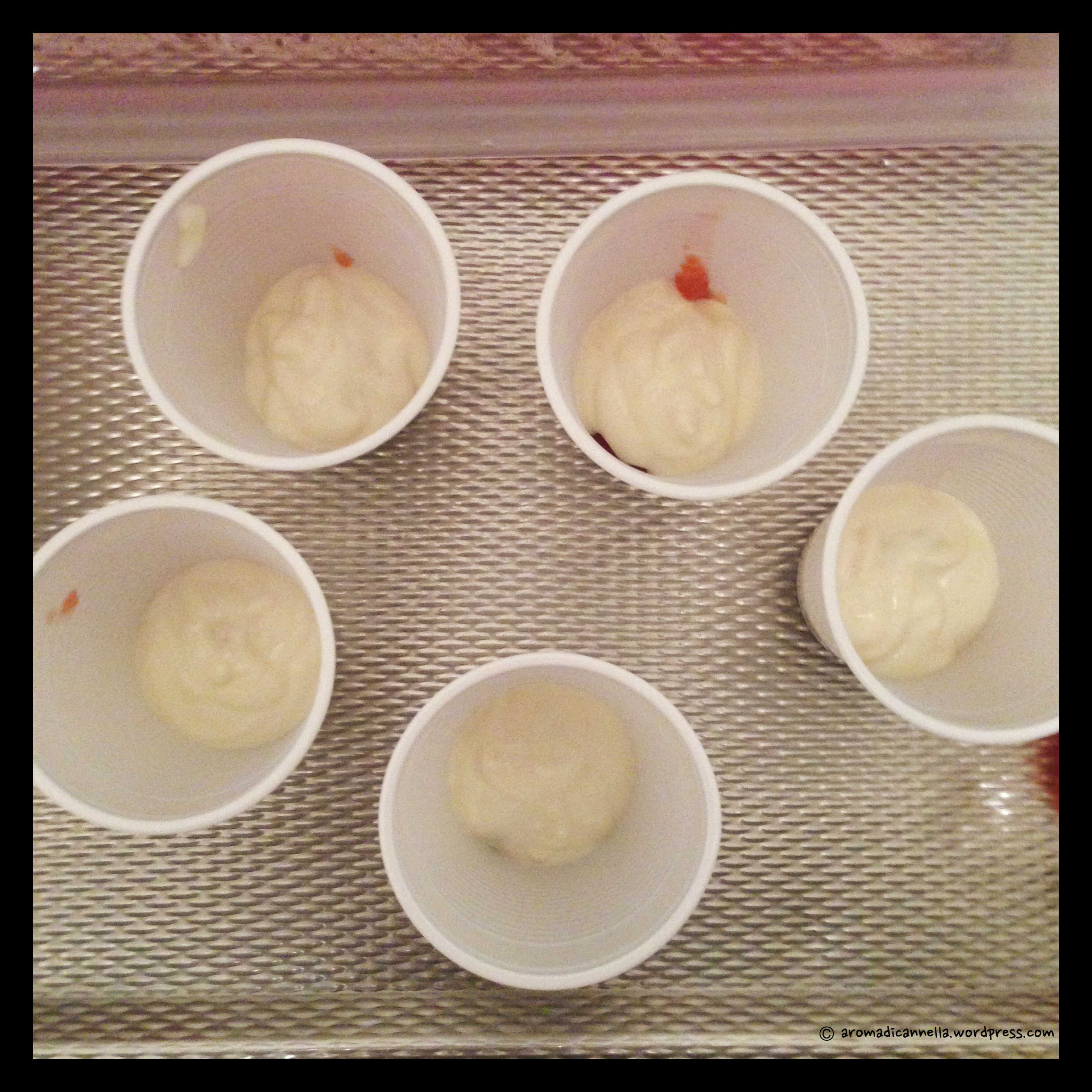 Ora, la ricetta del Cucchiaio d’Argento (senza dubbio a ragione!) consiglia di porre i bicchieri in congelatore per 4/5 ore e di tirarli fuori 15/20 minuti prima di consumarli. Quindi, se potete, fate così.