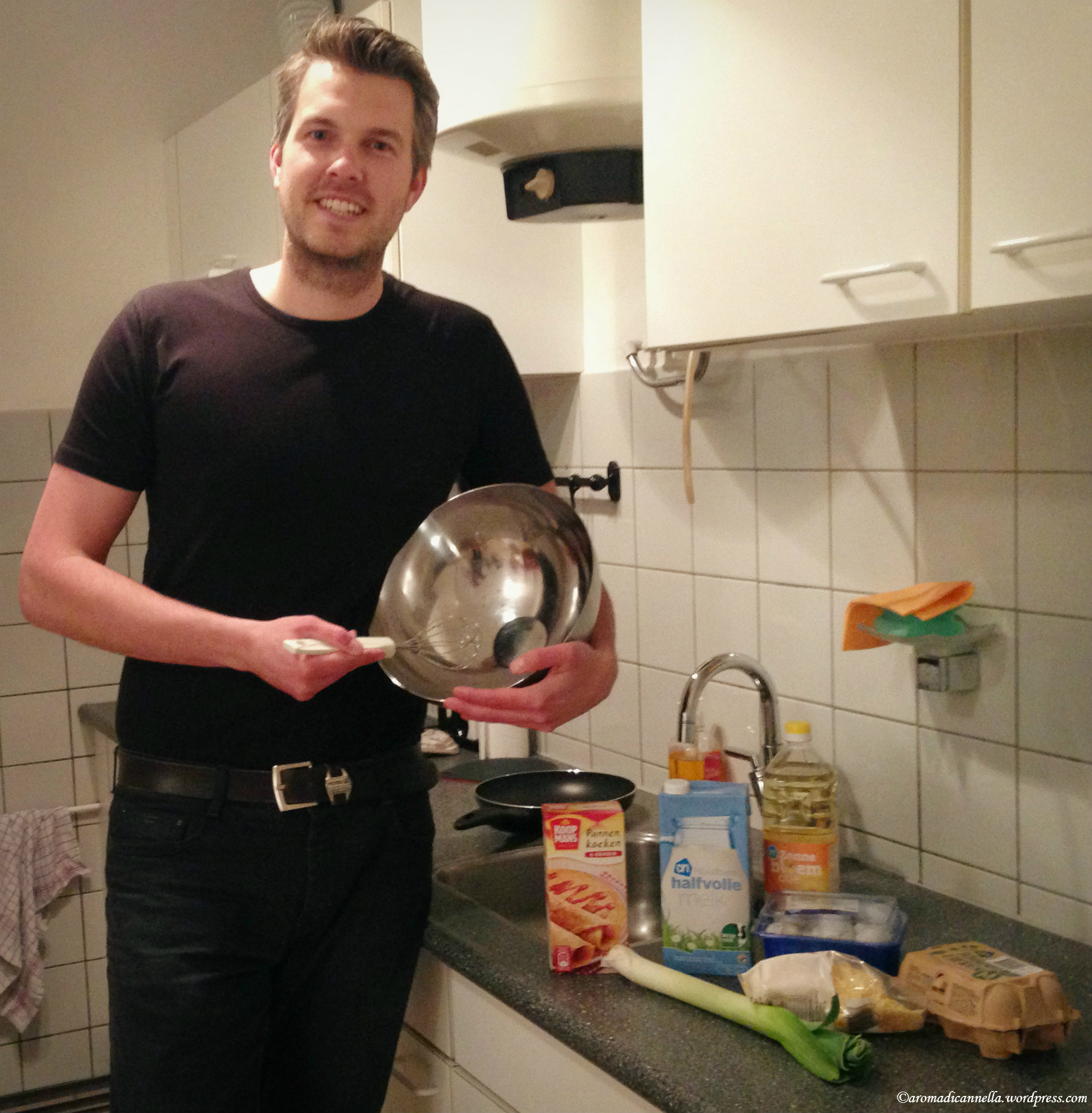 Così il giorno dopo, disperata per il terribile flop, son passata dal suo ufficio per comunicare l’epic fail e, probabilmente per pietà, Niels ha proposto l’idea di insegnarmi. L’altra sera ho dunque avuto la mia prima lezione di cucina tipica dutch con tanto di maestro, che si è pure offerto volontario ad apparire in un mini video tutorial, altra piccola novità per Aroma di Cannella.