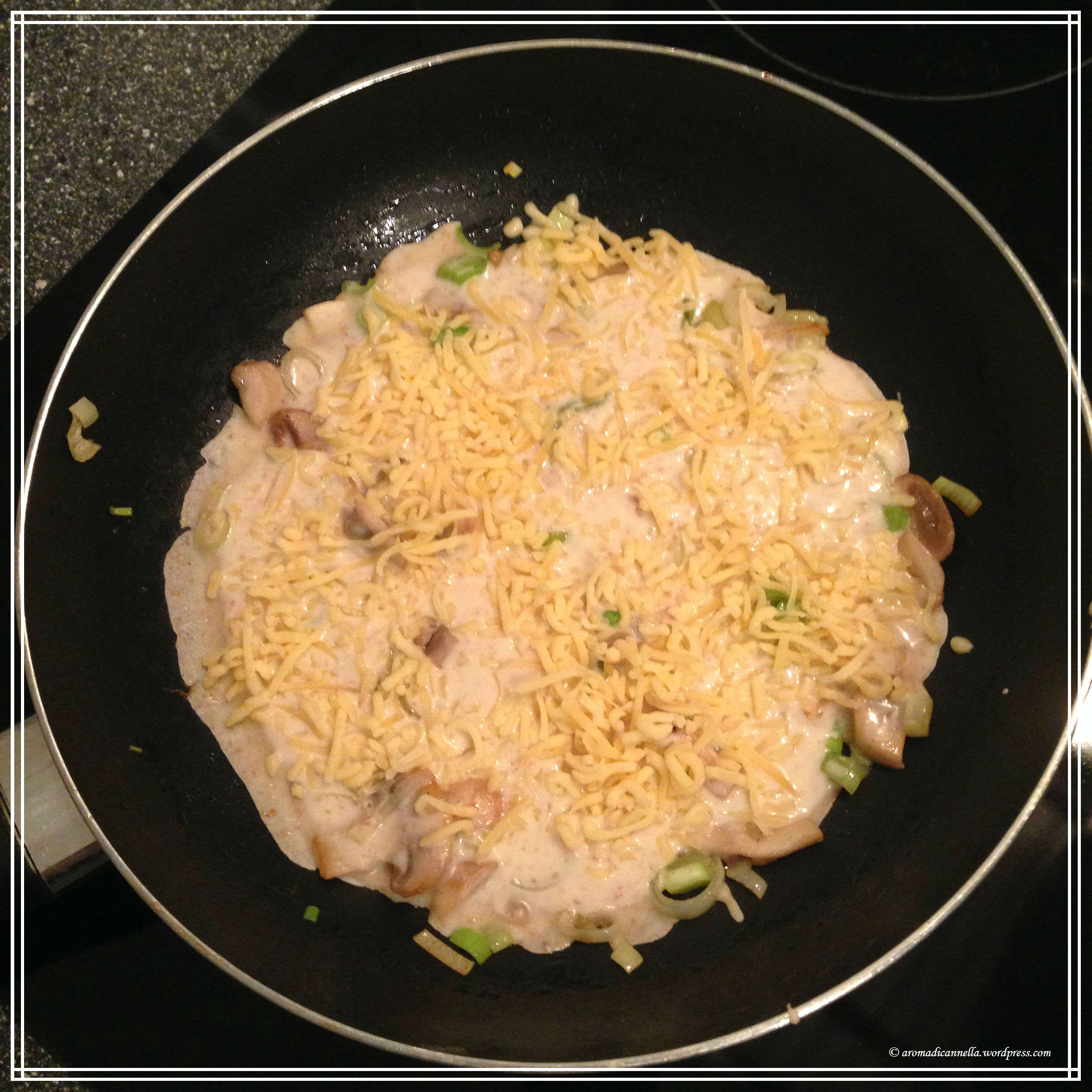 Per il ripieno/condimento (questa è una versione vegetariana per colpa della sottoscritta, ma a detta del king il re dei pannenkoeken è quello formaggio e bacon)