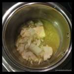 Start in the same way as the kroketten. In a pot, melt the butter with the onion. While leaving the pot in the stove, add the flour and stir with a fork. Add 1/2 soup spoons of bouillon each time and stir until absorbed. You have to obtain a creamy filling as in the picture. Add the sambal and the ketjap manis (picture).