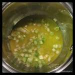 Add the cutted meat or a mix of two green onions, shrimps and surimi cutted in small pieces,  and stir. Put the filling in a plate until it cools down and then put it into the fridge.