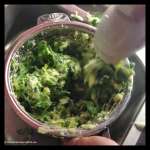 Cominciate bollendo le patate sbucciate e tagliate a pezzi in abbondante acqua salata. Nel frattempo tagliate a cubetti le mele e ponetele in una ciotola, in cui aggiungerete abbondante slasaus. Una volta che le patate sono pronte, ponete in una ciotola molto capiente, unite l’indivia, le mele con la slasaus e cominciate a frullare con uno sbattitore elettrico. Meglio se vi mettete dentro il lavandino come abbiamo fatto noi per evitare di sporcare dappertutto. Aggiunte tocchetti di burro e latte un po’ alla volta fino a ridurre tutto in purea.