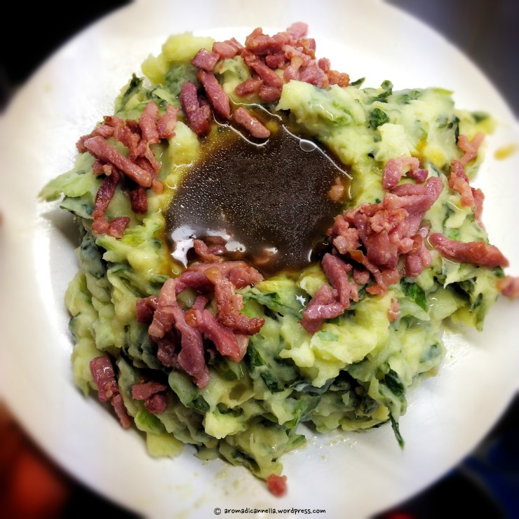 Per festeggiare un anno dal trasferimento, voglio dunque rendere omaggio alla mia nuova terra di residenza con un piatto tipico, che però non si addice per nulla al clima che abbiamo ora. Però è stata la prima pietanza olandese che ho mangiato l’anno scorso durante quel sabato, se vogliamo escludere gli stroopwafel e il pesce fritto del mercato: mi riferisco allo stamppot, il purè di patate e verdure che accompagna, tradizionalmente, carne, ma può essere mangiato anche con il pesce o in versione vegetariana. La ricetta che vi propongo io oggi è con l’indivia e risale alla cena olandese dello scorso novembre – periodo in cui lo stamppot è perfetto, ossia autunno-inverno. Io, essendo vegetariana, l’ho mangiato senza bacon, ma qui lo trovate in versione originale.