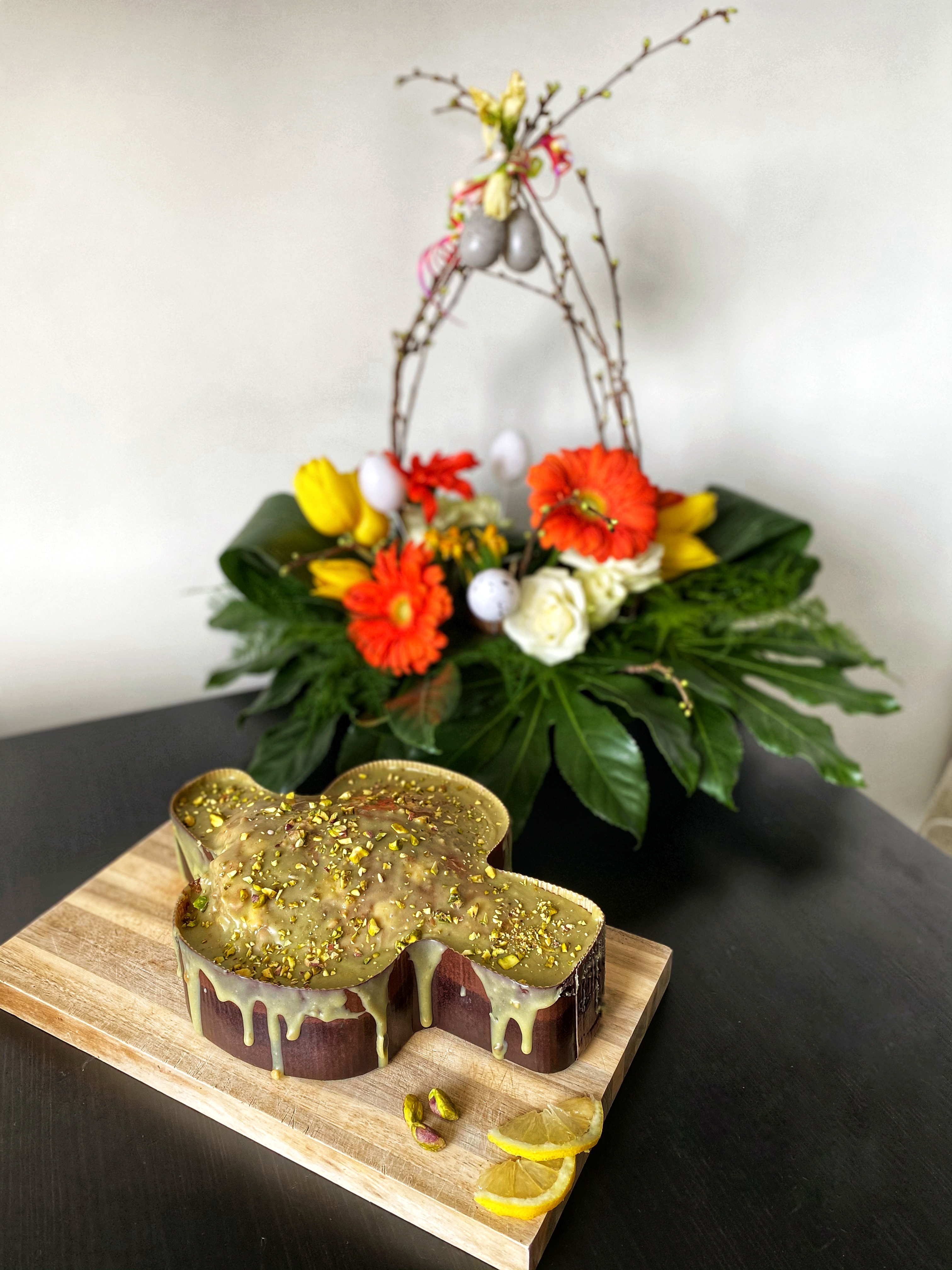 Of course, as tradition calls, I spent quite some time in the kitchen bakign my bday cake. As this is the Easter weekend, I opted for a themed-cake and prepared the Italian typical Colomba with a bit more sophisticated twist: the dough with a crunchy note of pistachios, a filling of lemon pastry cream, and a nice top of pistachio glaze. Love this one.