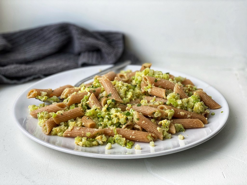 Let’s go Italian for today’s lunch? 🇮🇹 what about some lighter vegetarian PASTA “ALLA CARBONARA”? Quotes are mandatory because this one has little to do with the original version 😉