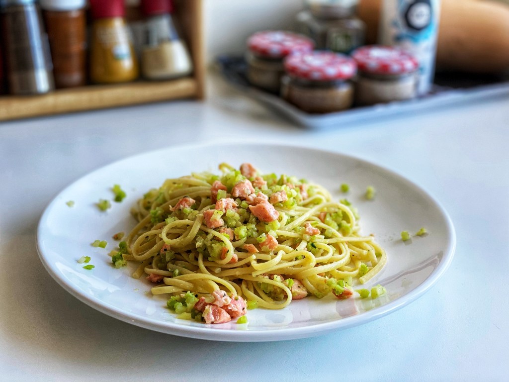 When it’s ready, drain the spaghetti and pour them in the pan with the salmon and broccoli, add some fresh parsley and stir for a couple of minutes on medium heat.