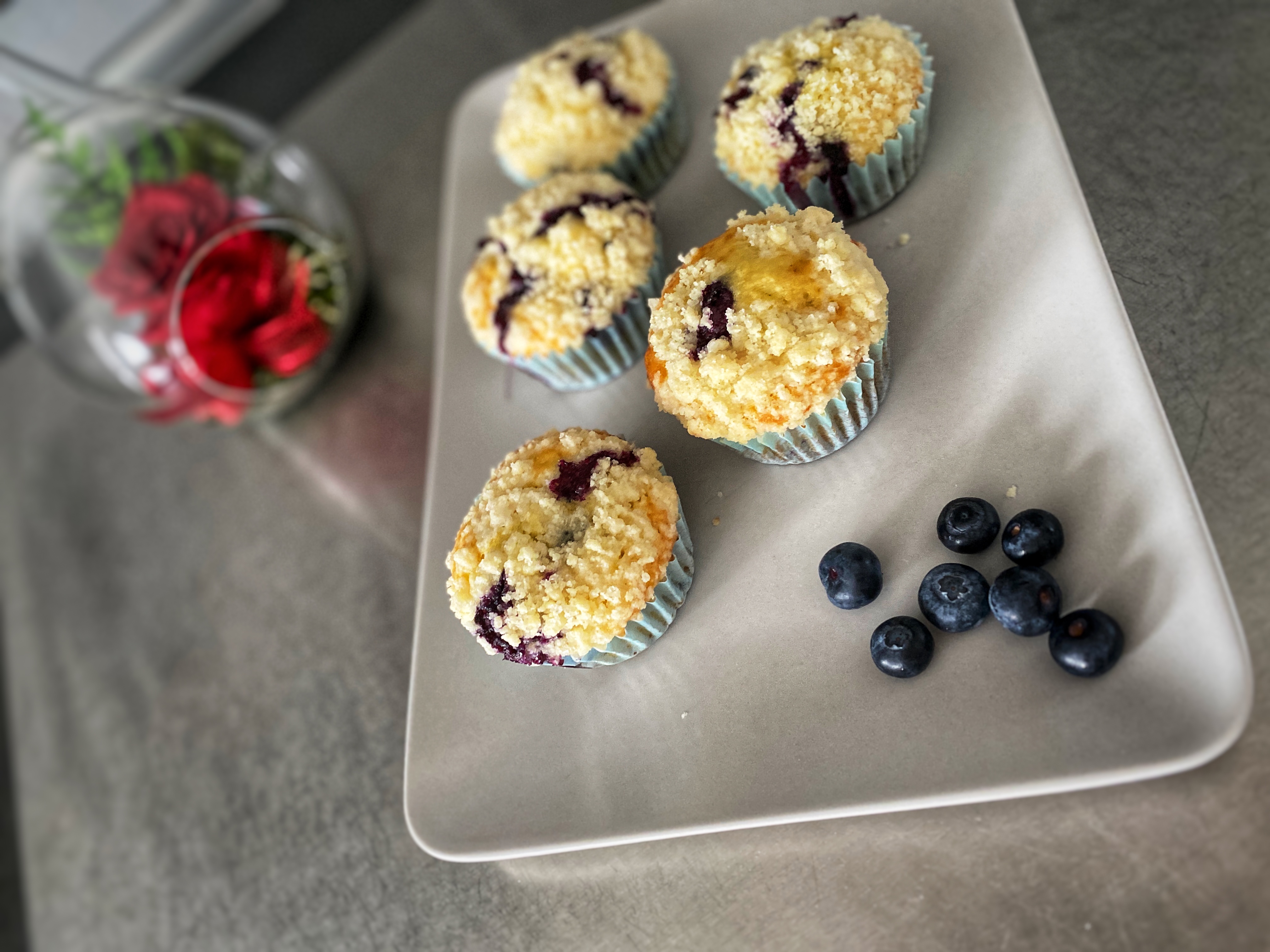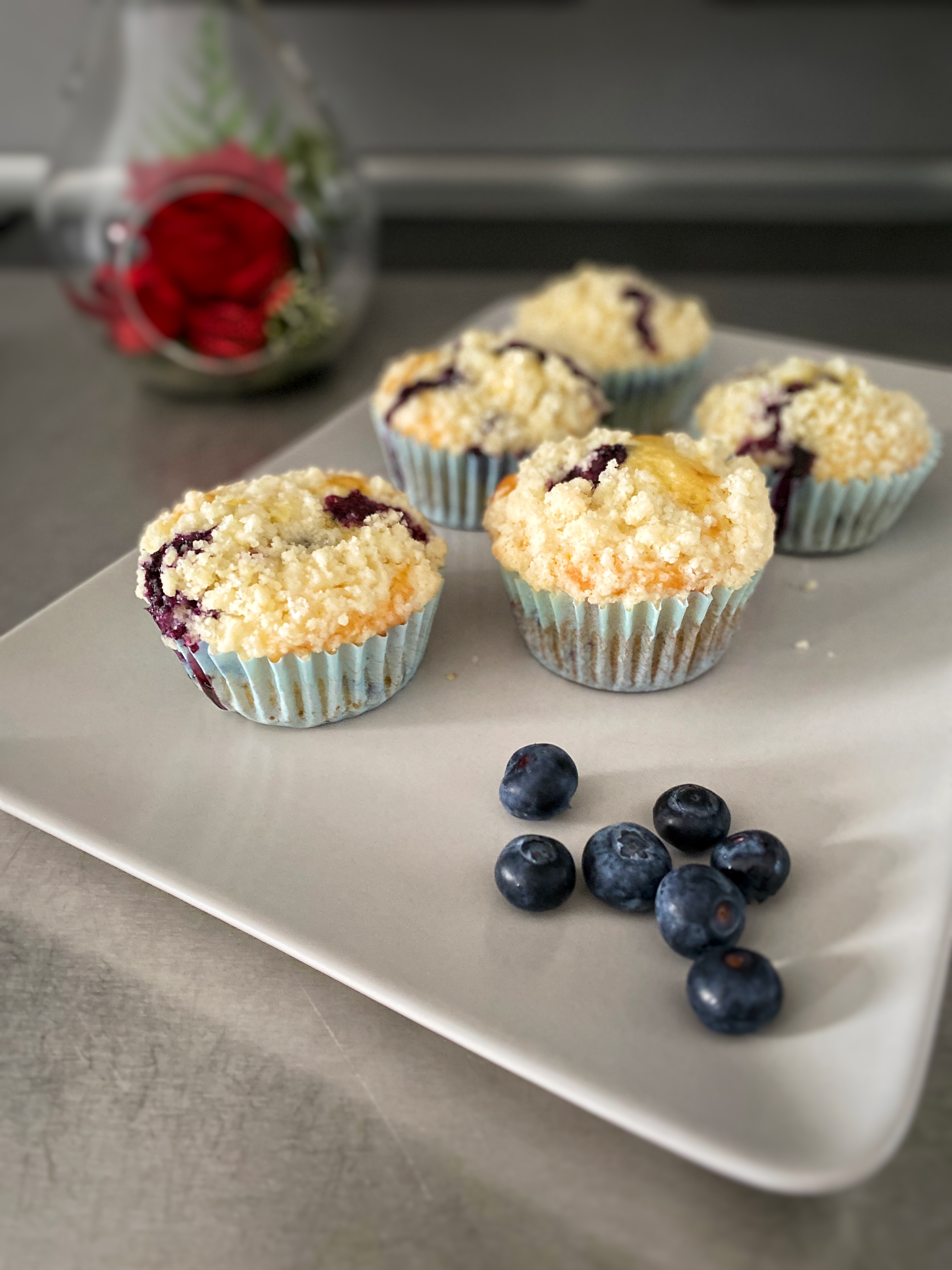 As usual, blog-versary is the occasion for some good baking time, so here I share with you this nice recipe of crumble-blueberry muffins. Enjoy!