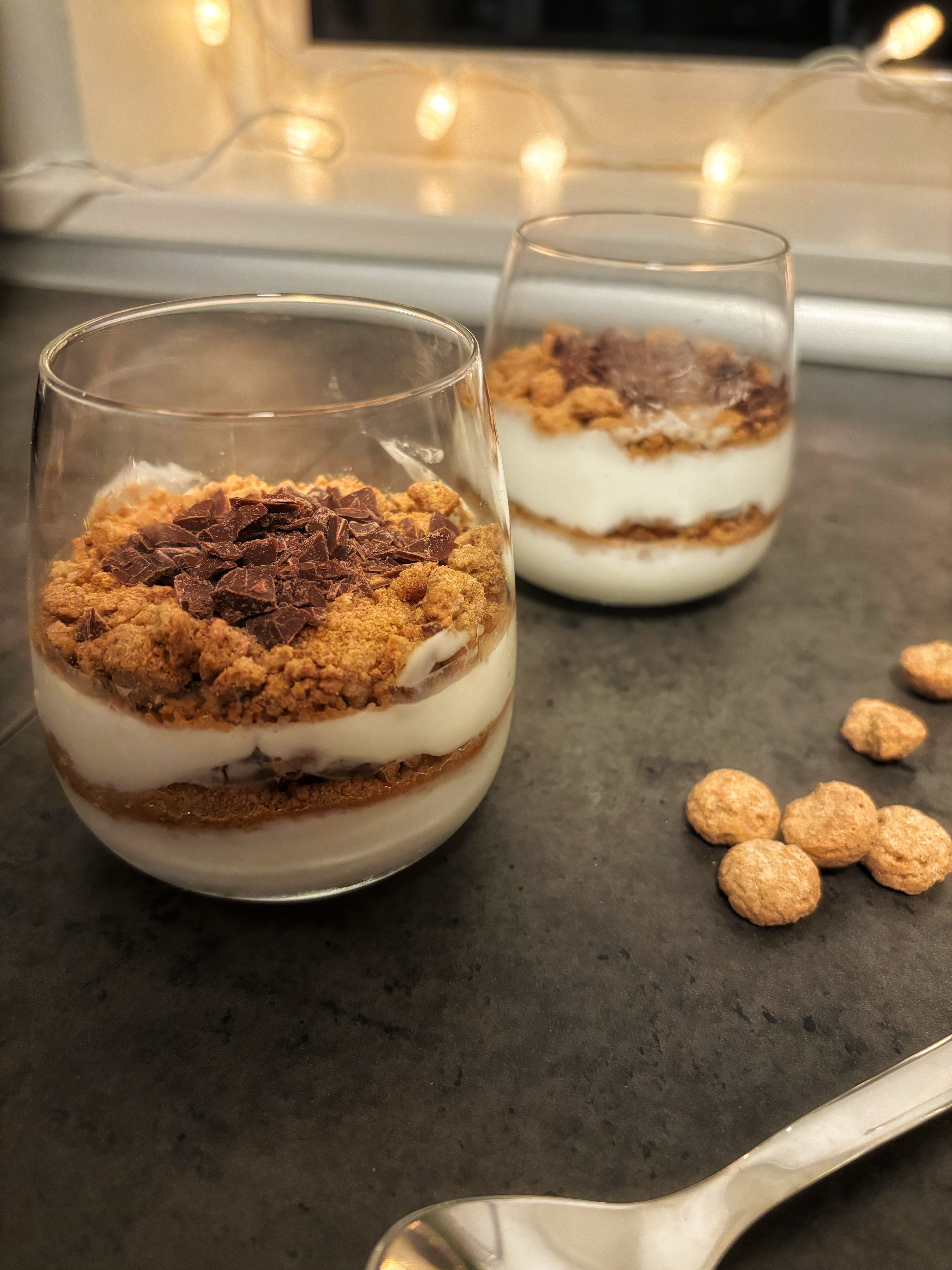 Dutch-culinary lessons apart, here a kruidnoten & chocolate clear-up idea for a nice and relatevily health(ier) dessert to close off your Sinterklaas celebrations with family and friends: I called them Sinterglaasjes, made with low-fat (healthier, right?) quark, kruidnoten crumble, raisins and chocolate!