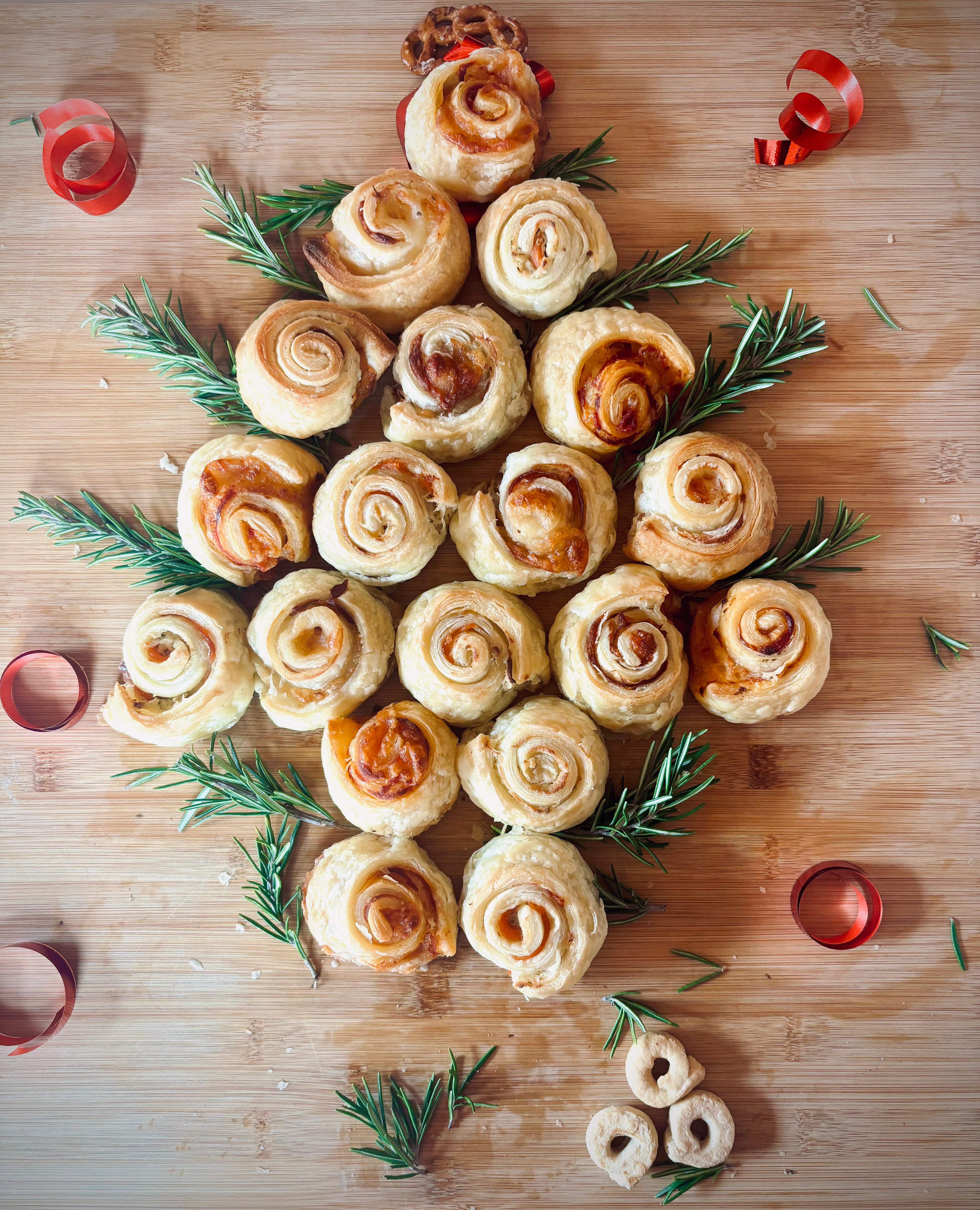 A puff pastry Christmas tree filled with delicious ingredients 😋