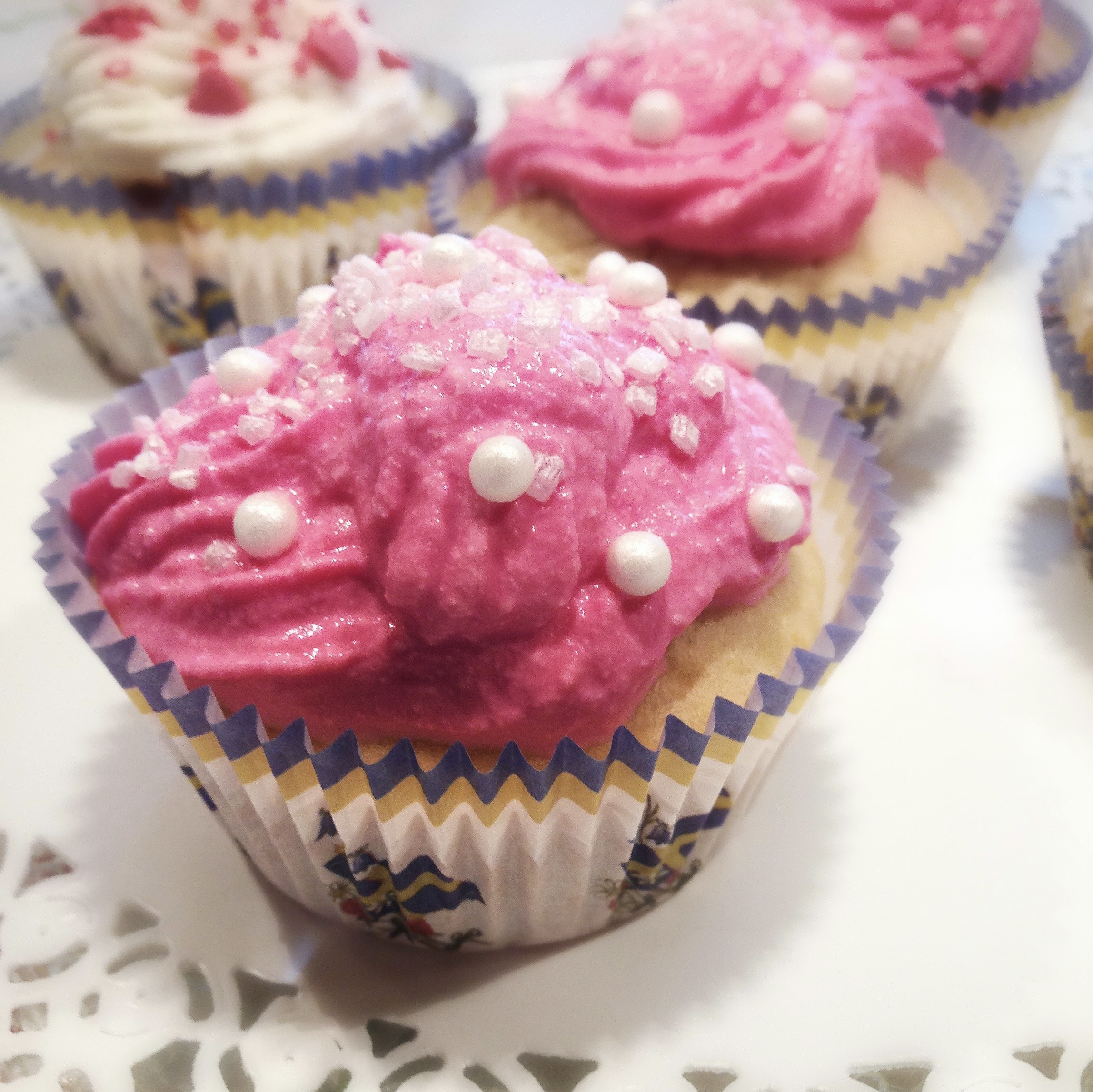 - Assorted sugar sprinkles (here pink and white)