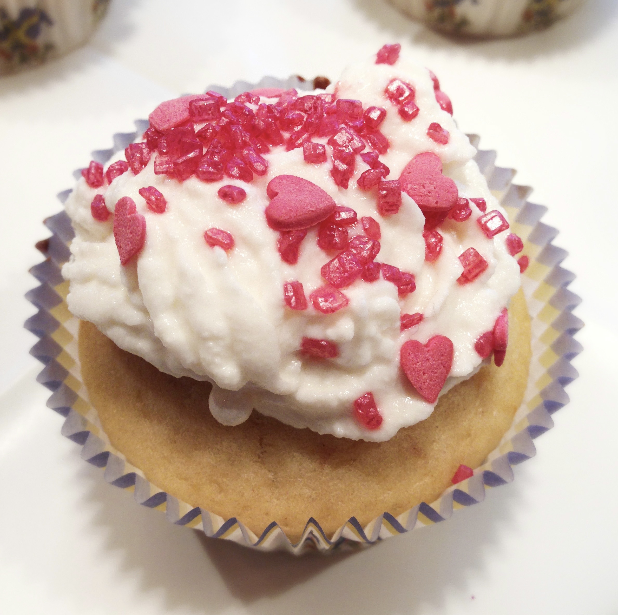 - Once the muffins are completely cool, decorate them with the ricotta frosting using a piping bag or decorating gun. Finish with sugar sprinkles on top…use your imagination ✨
