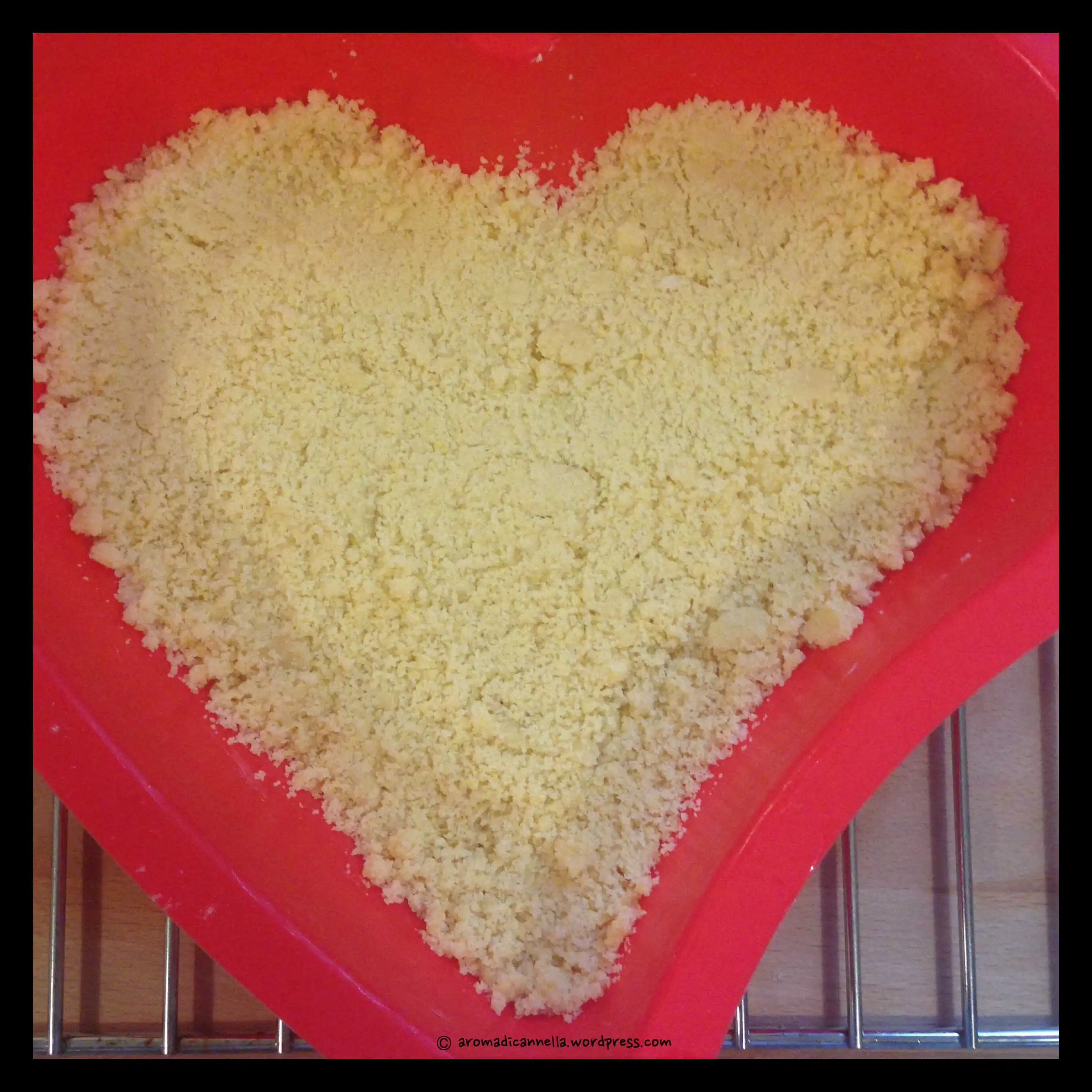 - In a food processor, add all the ingredients for the cake and pulse until you get a sandy, crumbly mixture. Transfer it to a bowl.