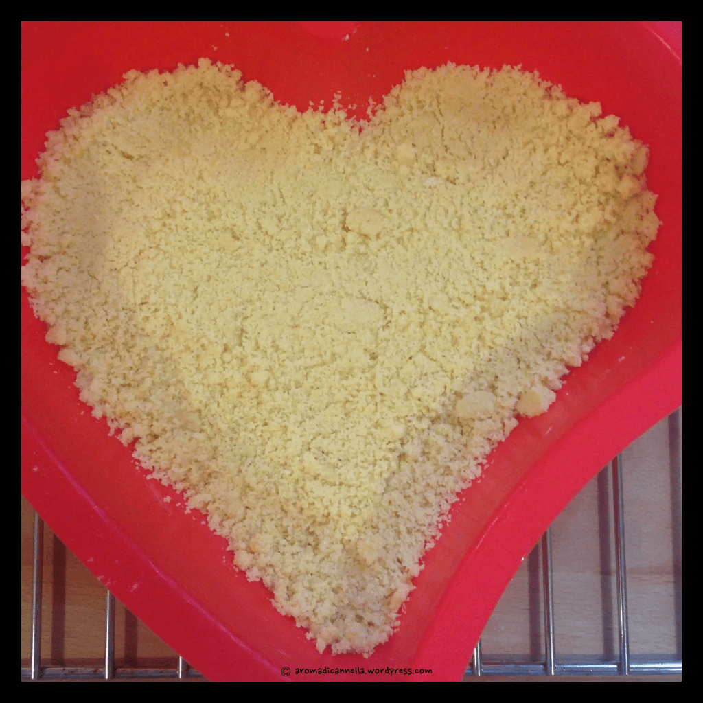 - Cover the filling with the remaining crumbly dough, distributing it over the surface without pressing too hard.